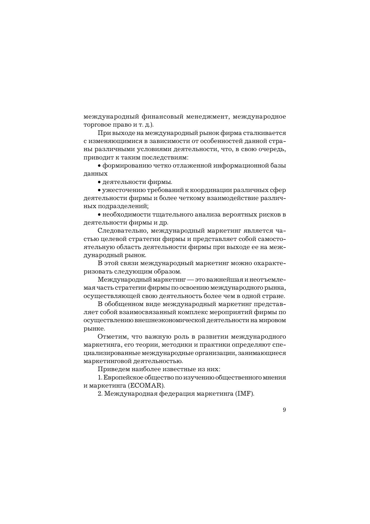 маркетинговые исследования международных рынков, рассматриваются вопросы ценообразования, формы и методы выхода на международный рынок. Особое внимание уделено вопросам маркетинговых стратегий на международном рынке и правовому сопровождению международных коммерческих сделок.