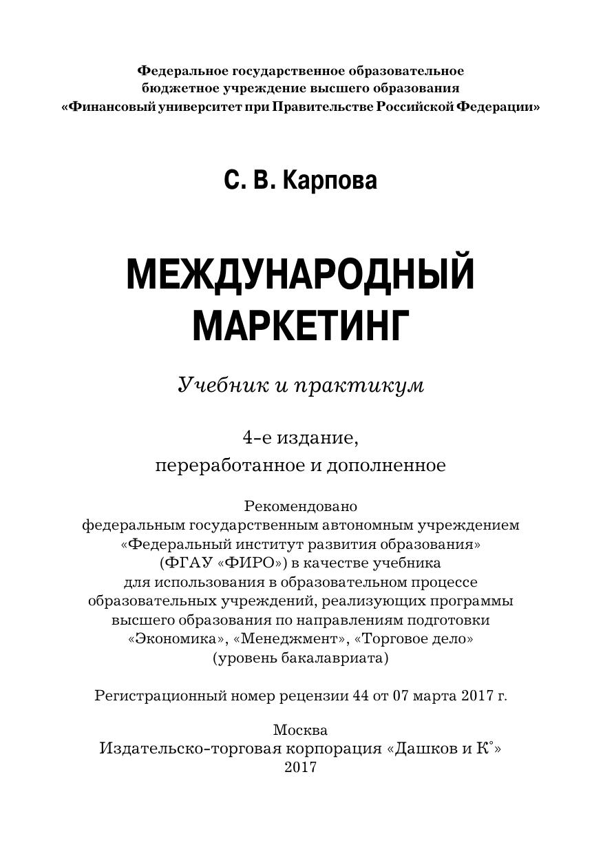 В учебнике представлен основной учебный материал для подготовки к лекционным и семинарским занятиям по дисциплине «Международный маркетинг». Материалы издания могут быть также использованы при подготовке лекций по курсам: «Маркетинг», «Управление маркетингом», «Рекламная деятельность», «Внешнеэкономическая деятельность», «Международное рекламное дело», «Международное коммерческое дело», а также другим спецкурсам, связанным с изучением международного рынка товаров и услуг в образовательных организациях высшего и среднего профессионального образования России и стран СНГ. Для студентов бакалавриата, обучающихся по направлениям подготовки «Экономика», «Менеджмент», «Торговое дело», изучающих современные международные экономические отношения в различных сферах деятельности.