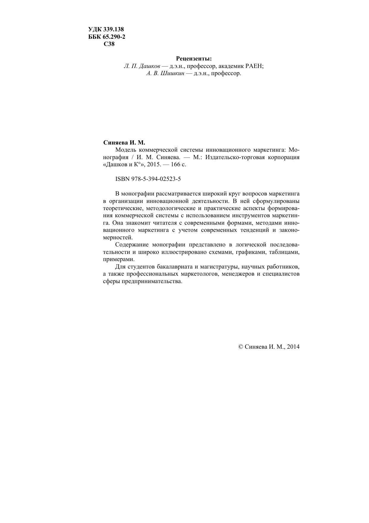 В монографии рассматривается широкий круг вопросов маркетинга в организации инновационной деятельности. В ней сформулированы теоретические, методологические и практические аспекты формирования коммерческой системы с использованием инструментов маркетинга. Она знакомит читателя с современными формами, методами инновационного маркетинга с учетом современных тенденций и закономерностей. Содержание монографии представлено в логической последовательности и широко иллюстрировано схемами, графиками, таблицами, примерами. Для студентов бакалавриата и магистратуры, научных работников, а также профессиональных маркетологов, менеджеров и специалистов сферы предпринимательства.