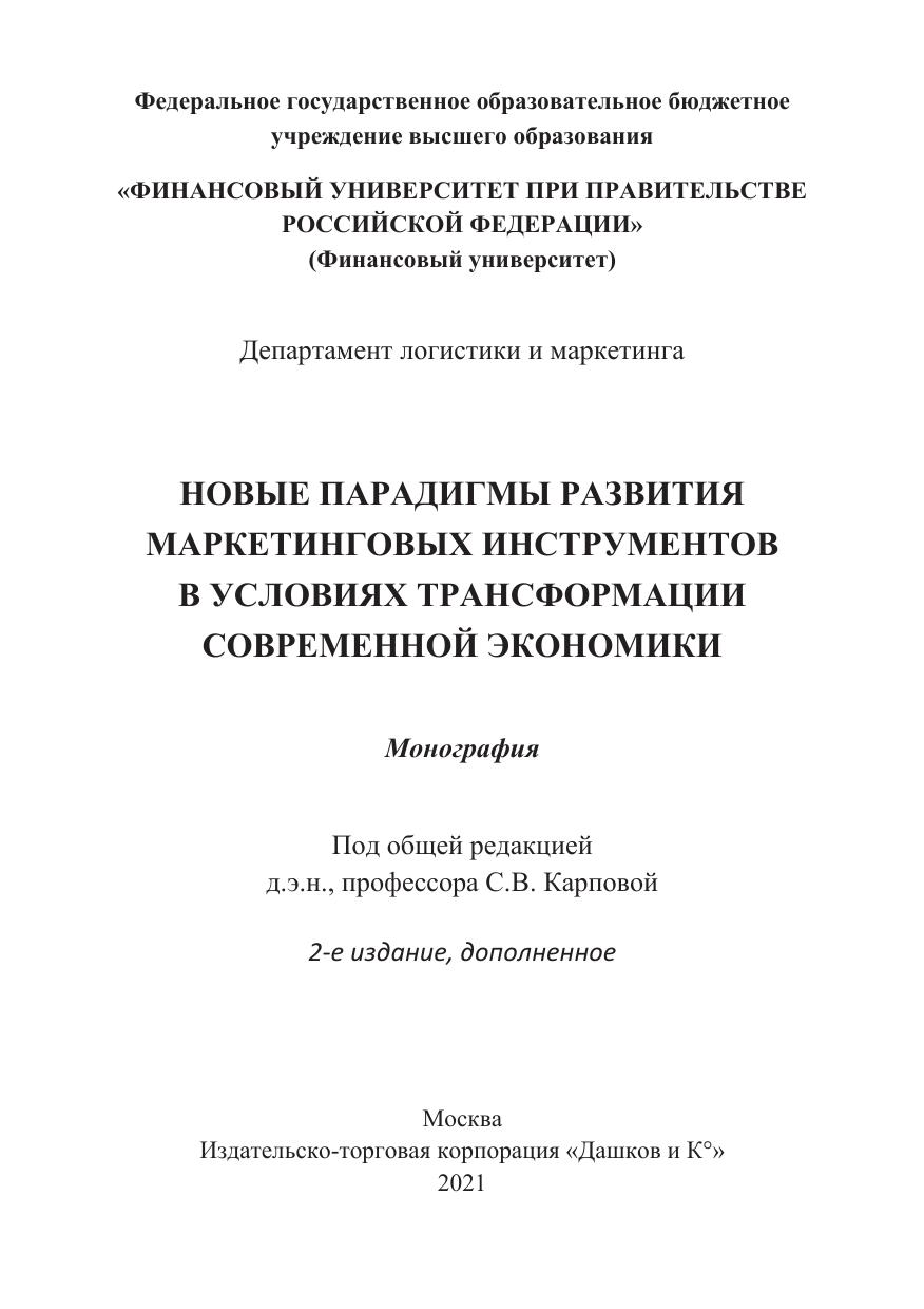 Новые парадигмы развития маркетинговых инструментов в условиях трансформации современной экономики