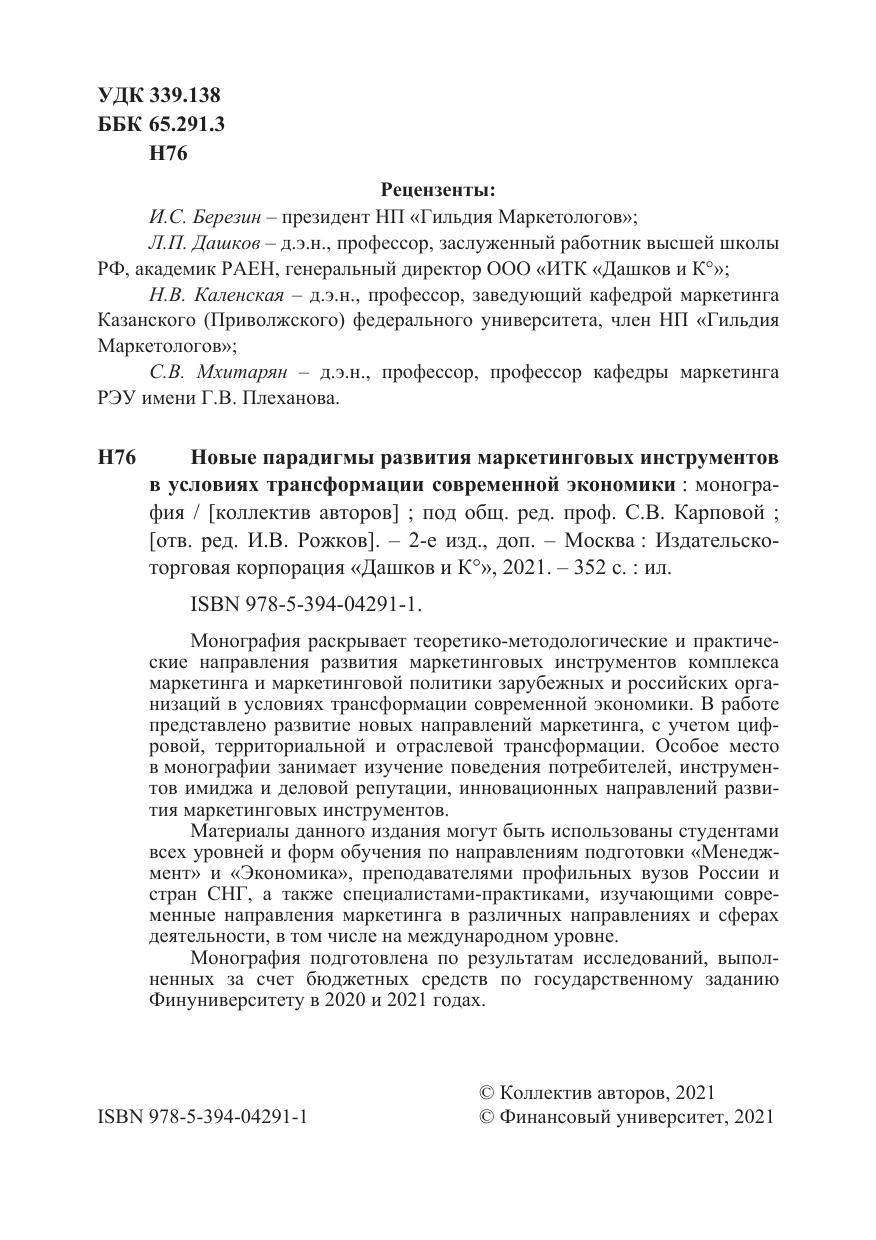 Монография раскрывает теоретико-методологические и практические направления развития маркетинговых инструментов комплекса маркетинга и маркетинговой политики зарубежных и российских организаций в условиях трансформации современной экономики. В работе представлено развитие новых направлений маркетинга, с учетом цифровой, территориальной и отраслевой трансформации. Особое место в монографии занимает изучение поведения потребителей, инструментов имиджа и деловой репутации, инновационных направлений развития маркетинговых инструментов.