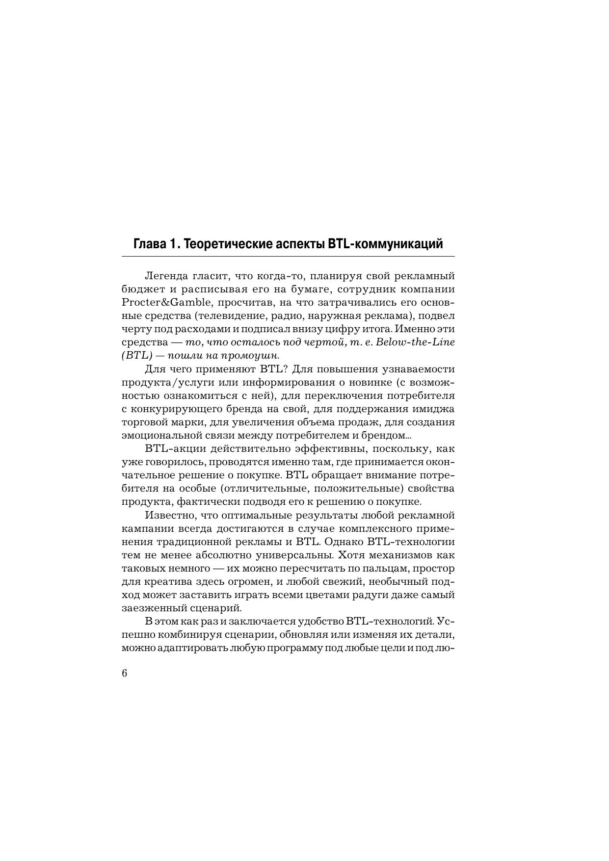 В учебном пособии даются практические рекомендации по организации рекламных мероприятий посредством BTL-коммуникаций. Это такие мероприятия, как дегустации, которые проводятся непосредственно в торговых залах, подарки за покупку, презентации товаров и услуг в интересах увеличения эффекта рекламной или PR-кампании в целом. Для студентов высших учебных заведений, а также широкого круга читателей.