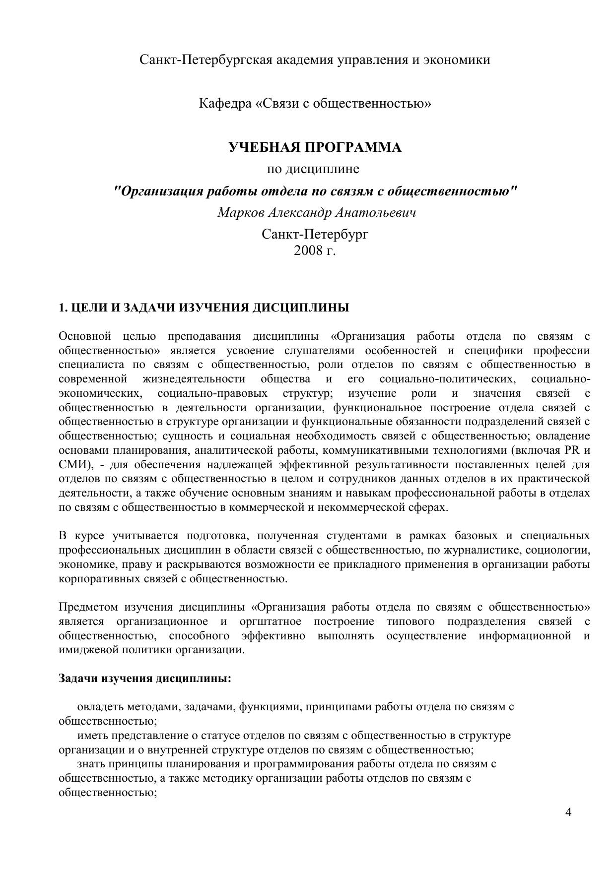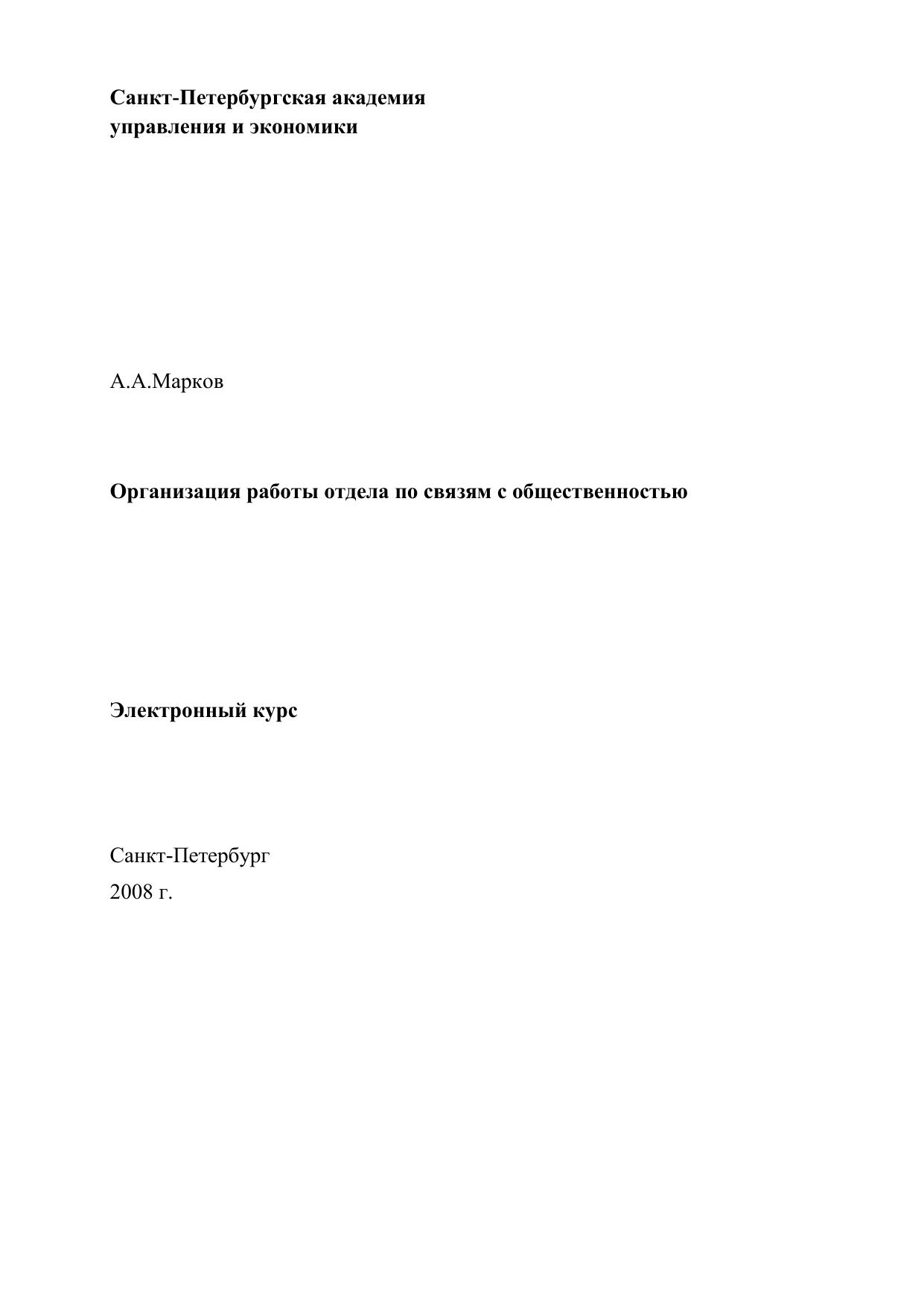 Организация работы отдела по связям с общественностью: Электронное учебное пособие