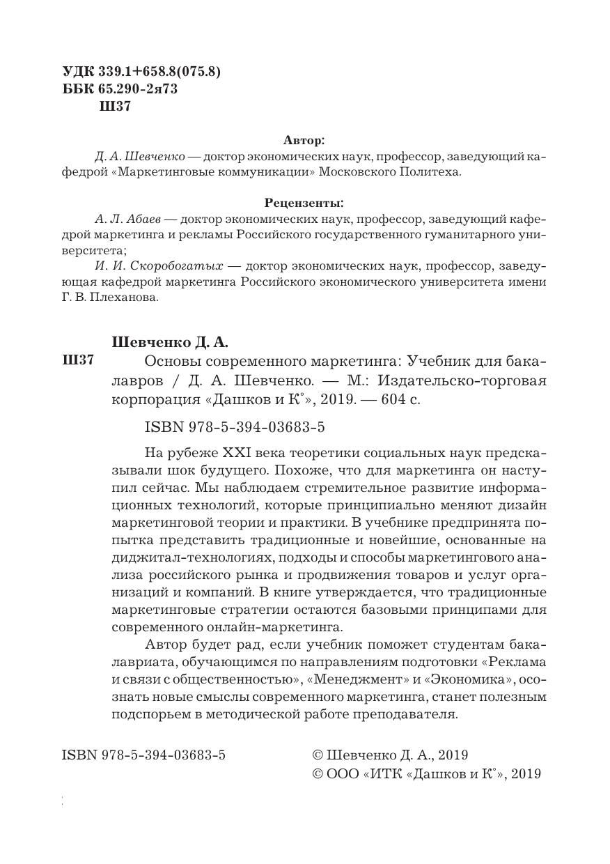 На рубеже XXI века теоретики социальных наук предсказывали шок будущего. Похоже, что для маркетинга он наступил сейчас. Мы наблюдаем стремительное развитие информационных технологий, которые принципиально меняют дизайн маркетинговой теории и практики. В учебнике предпринята попытка представить традиционные и новейшие, основанные на диджитал-технологиях, подходы и способы маркетингового анализа российского рынка и продвижения товаров и услуг организаций и компаний. В книге утверждается, что традиционные маркетинговые стратегии остаются базовыми принципами для современного онлайн-маркетинга. Автор будет рад, если учебник поможет студентам бакалавриата, обучающимся по направлениям подготовки «Реклама и связи с общественностью», «Менеджмент» и «Экономика», осознать новые смыслы современного маркетинга, станет полезным подспорьем в методической работе преподавателя.