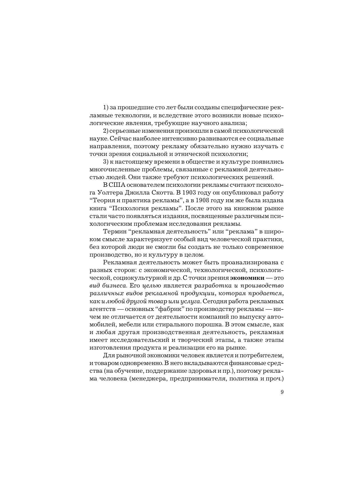 В учебнике обобщен теоретический, методологический и практический материал, связанный с анализом многочисленных и разнообразных проблем в области психологии рекламной деятельности. Раскрыты проблемы психологической эффективности рекламы, механизмы психологического воздействия рекламы на потребителя, психологические аспекты принятия решений и общепсихологические модели в рекламе, систематизированы современные психотехнологии рекламной деятельности,