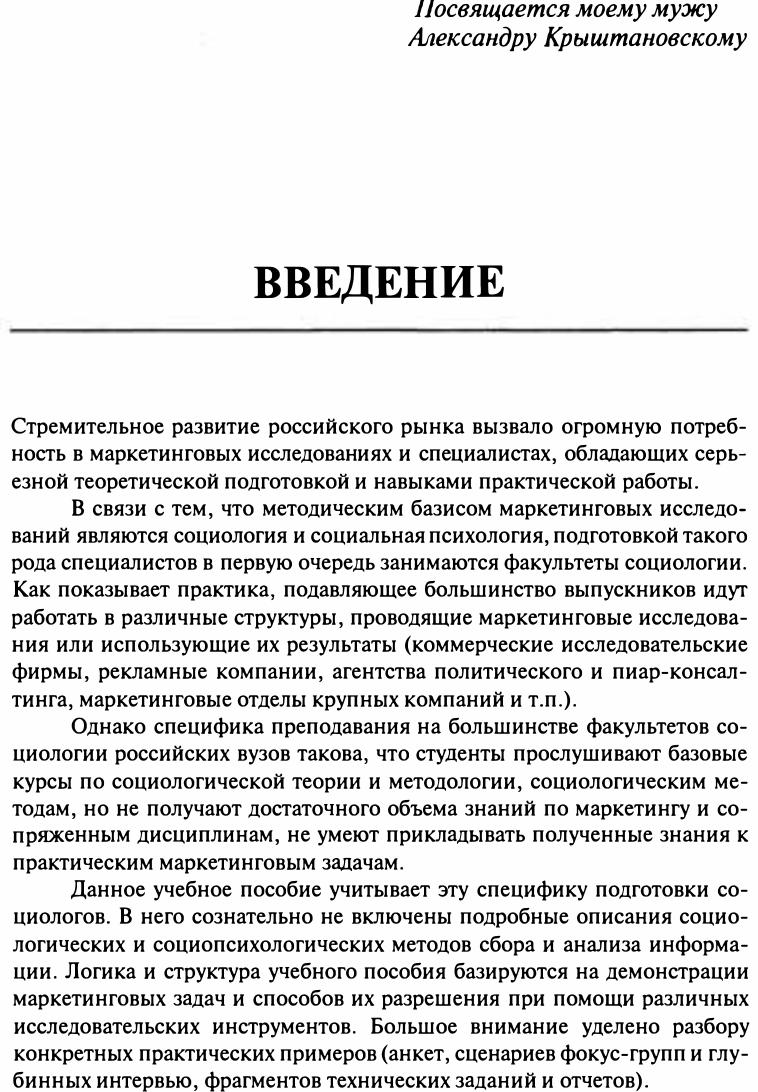 В учебном пособив рассматривается комплекс маркетинга с позиции исследователя, использующего социологические и социально-психологические методы сбора и анализа инсформации. Книга дает представление о том, какие методы исследования наиболее адекватны для решения тех или иных маркетинговых задач. Для студентов-социологов, маркетологов, специалистов, в чьи функции входит постановка проблемы перед исследовательскими компаниями и работа с результатами маркетинговых исследований.