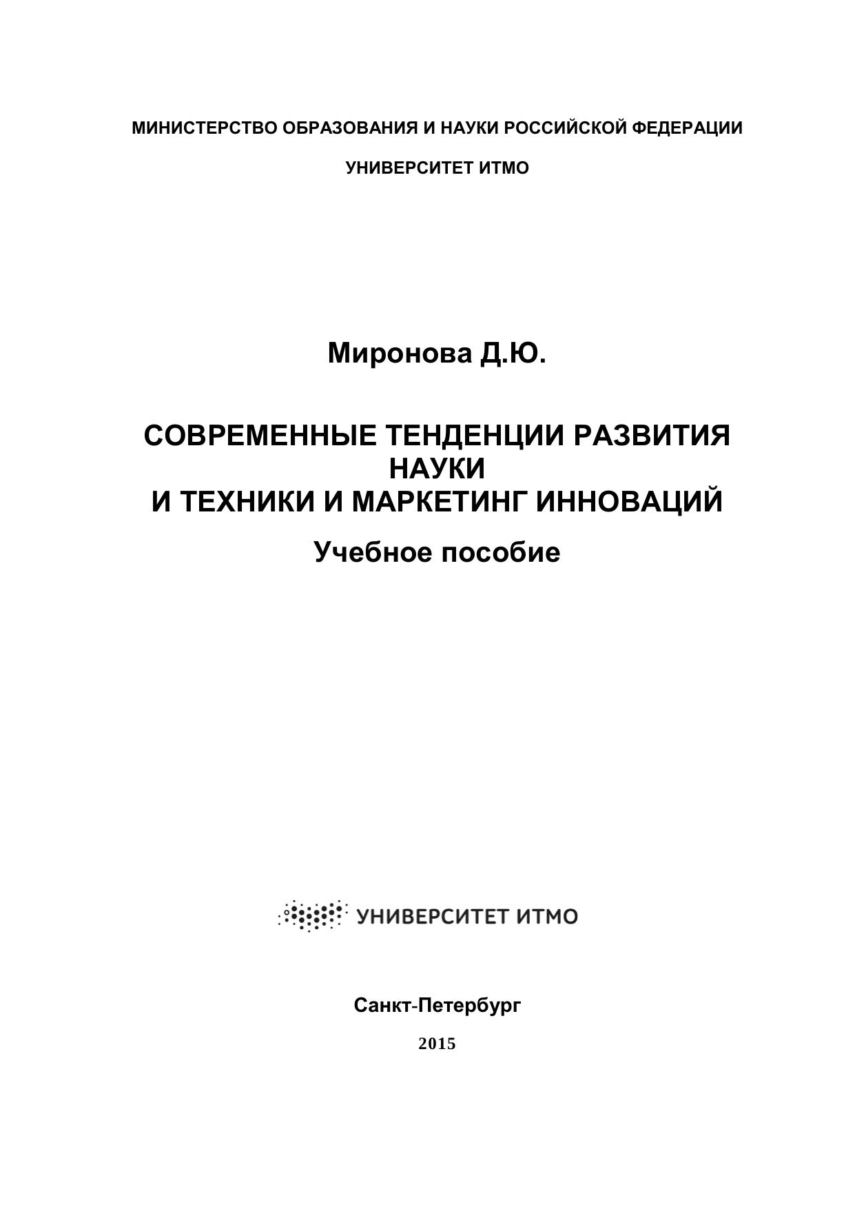 В учебном пособии рассматривается круг вопросов, связанных с анализом тенденций развития науки и техники и маркетингом инноваций. Учебное пособие разработано в соответствии с магистерской программой «Экономика и управление инновационной деятельностью в областях науки» и предназначено для студентов, обучающихся по направлению 27.04.05 «Инноватика».