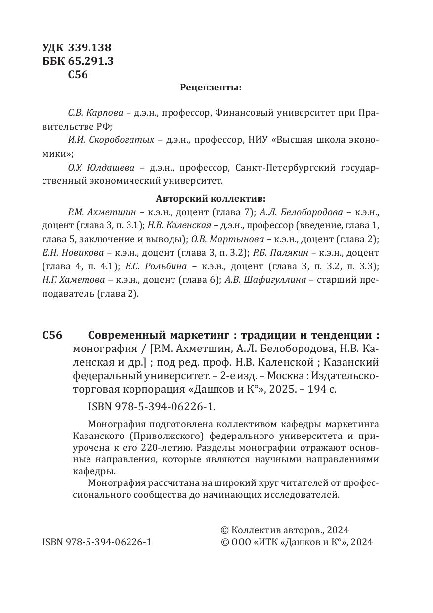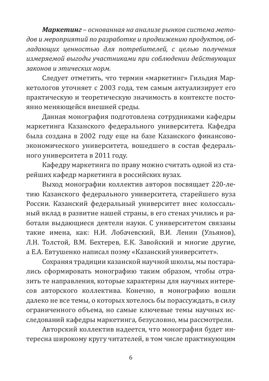 Монография подготовлена коллективом кафедры маркетинга Казанского (Приволжского) федерального университета и приурочена к его 220-летию. Разделы монографии отражают основные направления, которые являются научными направлениями кафедры.