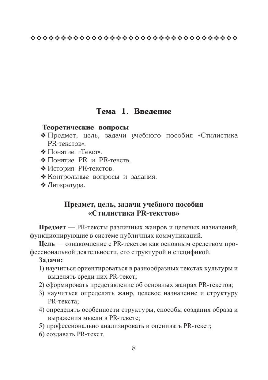 Учебное пособие является теоретическим и методологическим описанием структуры, языка и стиля первичных жанров PR-текстов и медиатекстов, функционирующих в современном информационном пространстве PR-коммуникаций.