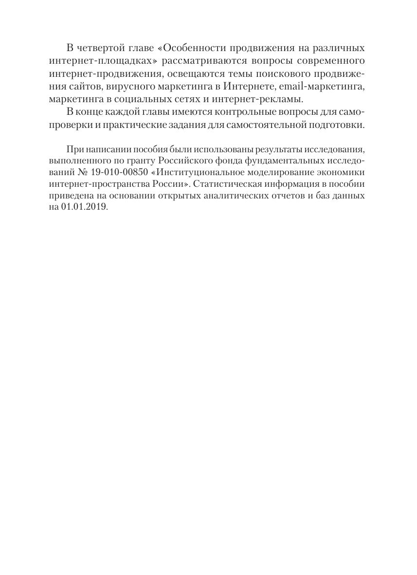 Адресовано аспирантам и преподавателям, занимающимся изучением вопросов интернет-маркетинга, цифровой экономики, информационного общества и проч.