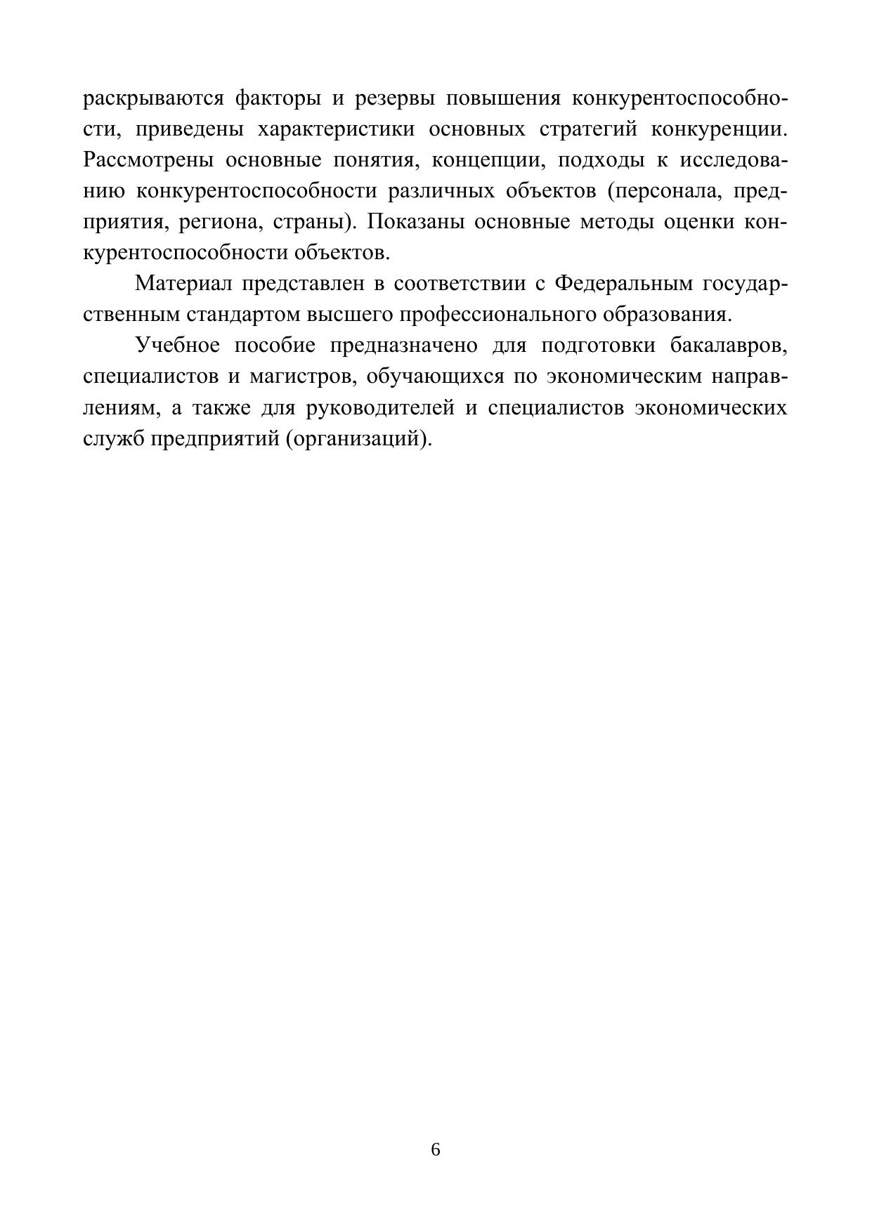 В учебном пособии определены факторы и показатели конкурентоспособности продукции, раскрыты стратегии обеспечения конкурентных преимуществ организации, описывается методика анализа конкурентоспособности продукции. Авторами рассмотрены факторы формирования конкурентоспособности города, региона и страны, а также показатели ее оценки.