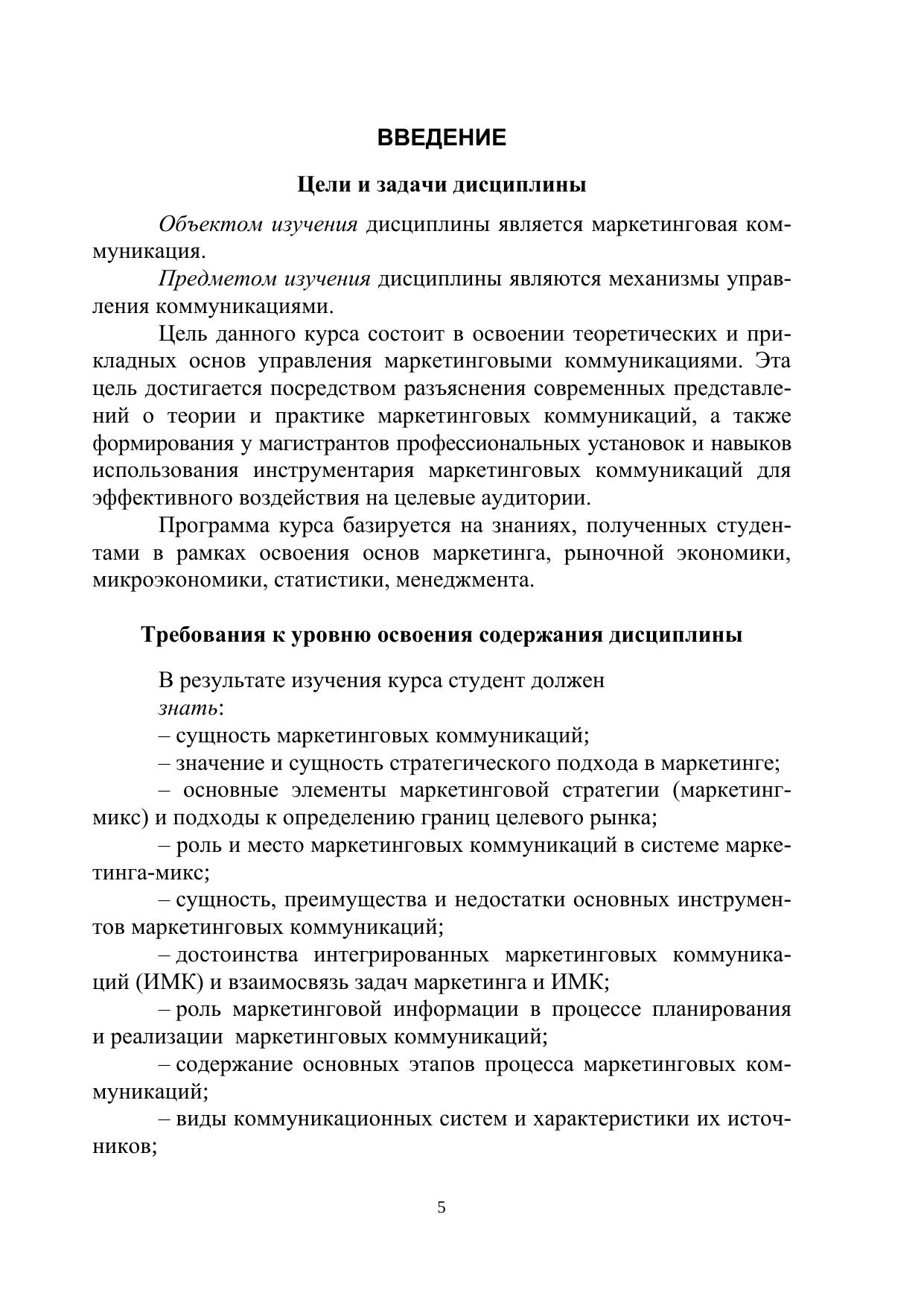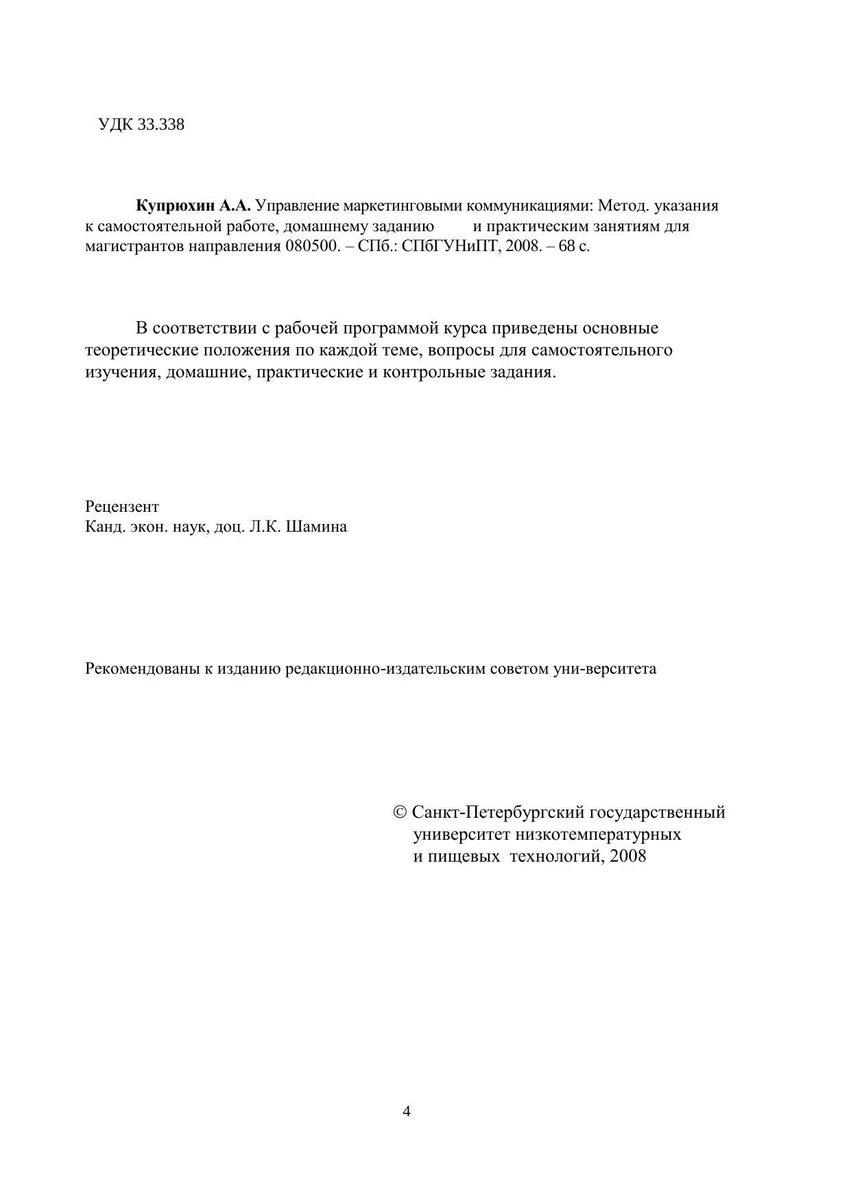 Управление маркетинговыми коммуникациями: Методические указания к самостоятельной работе, домашнему заданию и практическим занятиям для магистрантов направления 080500