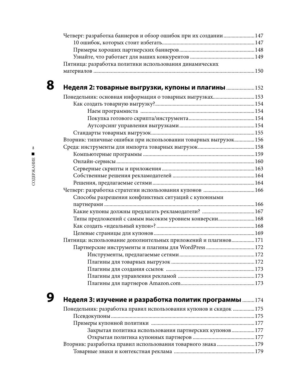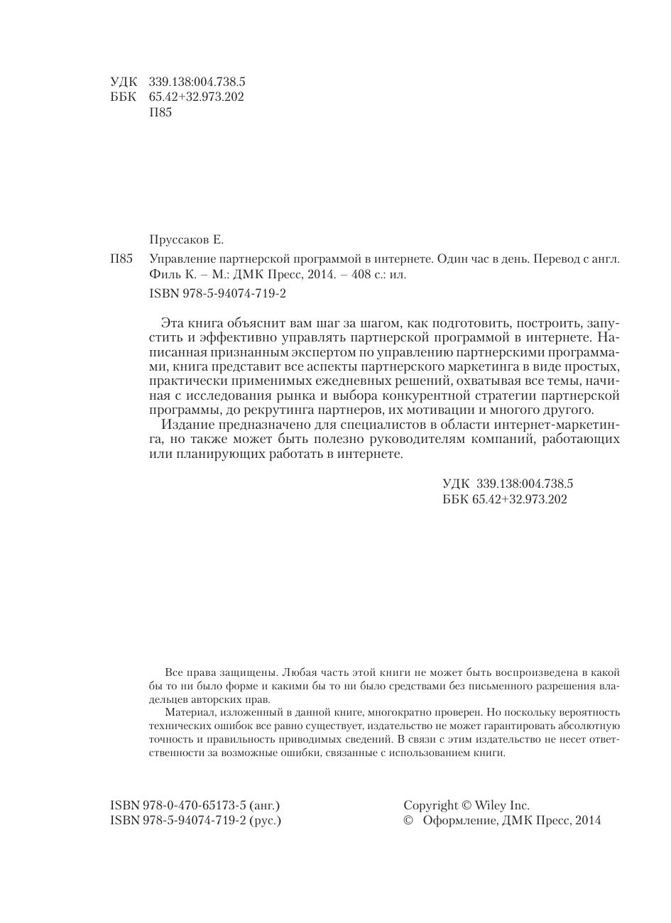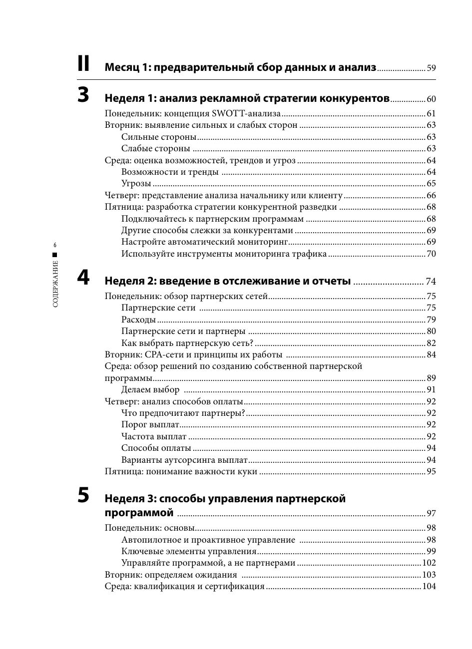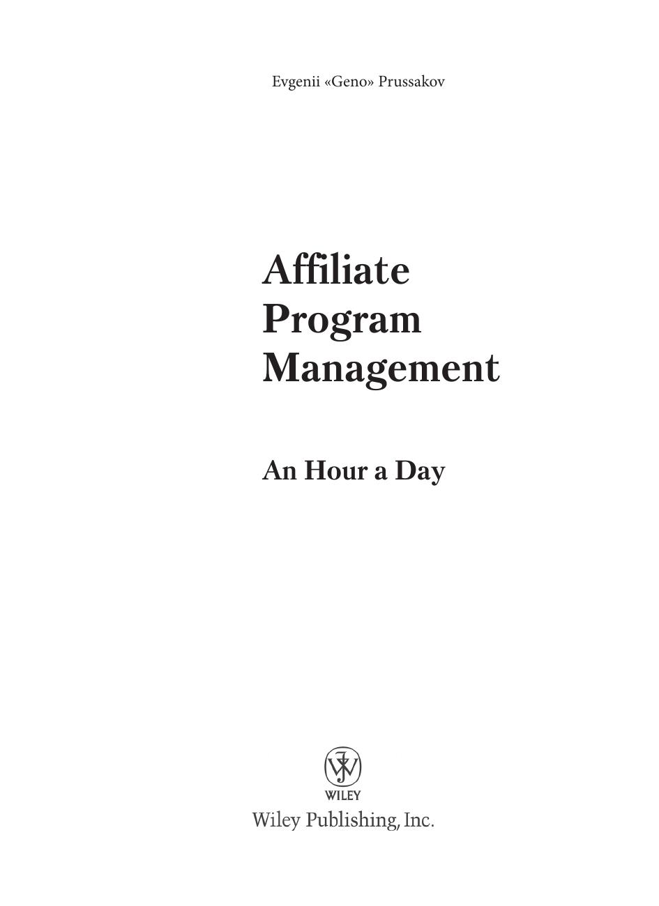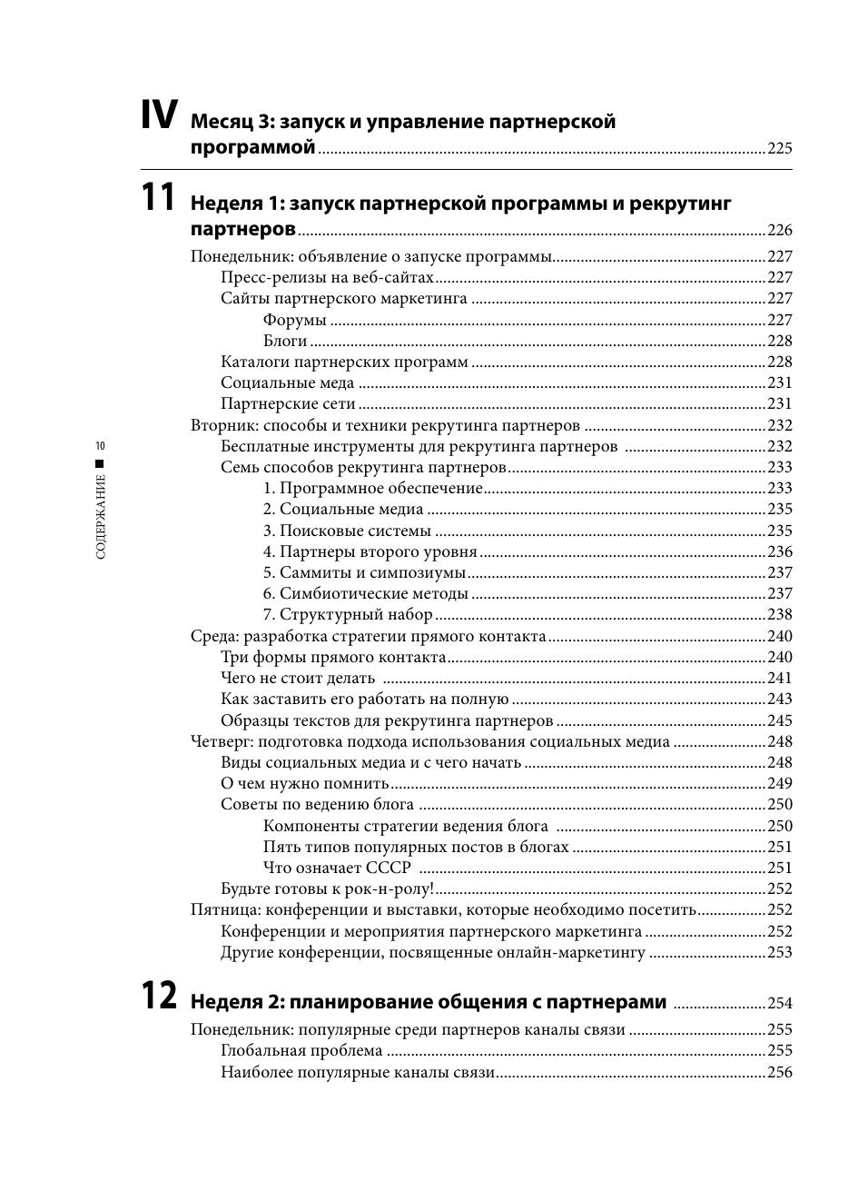 Эта книга объяснит вам шаг за шагом, как подготовить, построить, запустить и эффективно управлять партнерской программой в интернете. Написанная признанным экспертом по управлению партнерскими программами, книга представит все аспекты партнерского маркетинга в виде простых, практически применимых ежедневных решений, охватывая все темы, начиная с исследования рынка и выбора конкурентной стратегии партнерской программы, до рекрутинга партнеров, их мотивации и многого другого. Издание предназначено для специалистов в области интернет-маркетинга, но также может быть полезно руководителям компаний, работающих или планирующих работать в интернете.