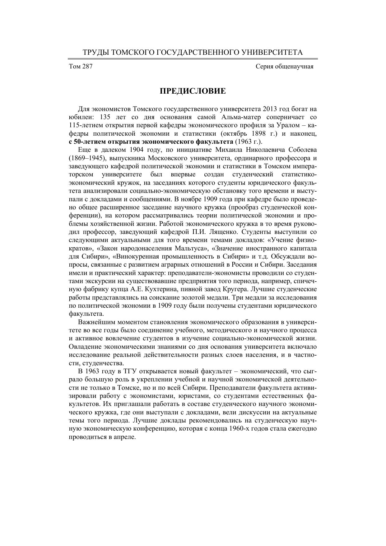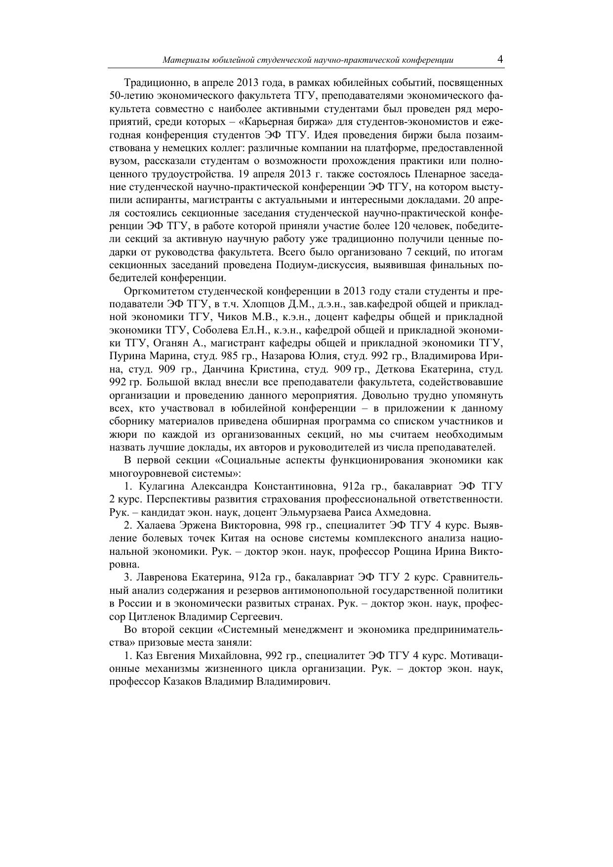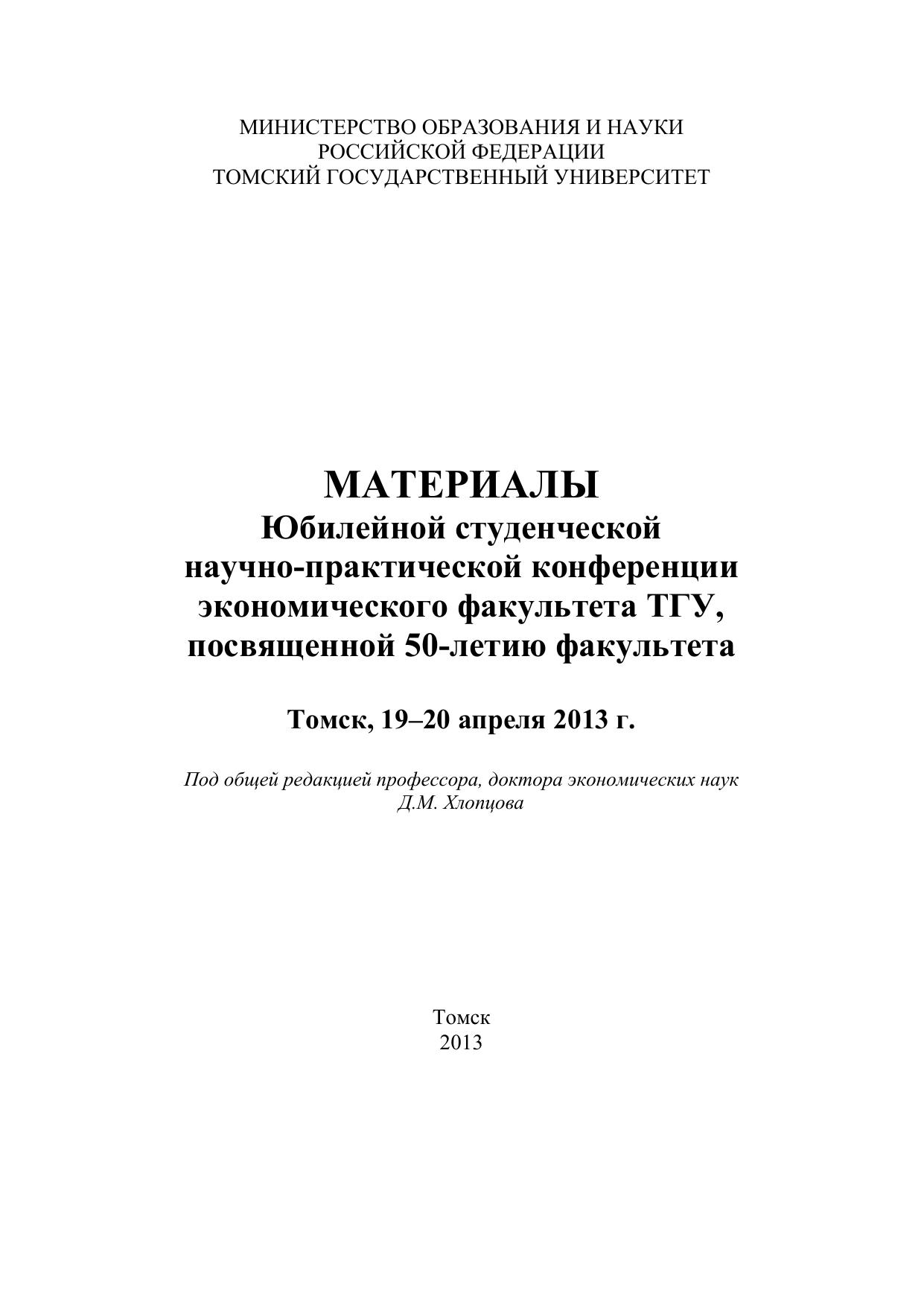 Материалы Юбилейной студенческой научно-практической конференции экономического факультета ТГУ, посвященной 50-летию факультета. Томск, 19–20 апреля 2013 г.