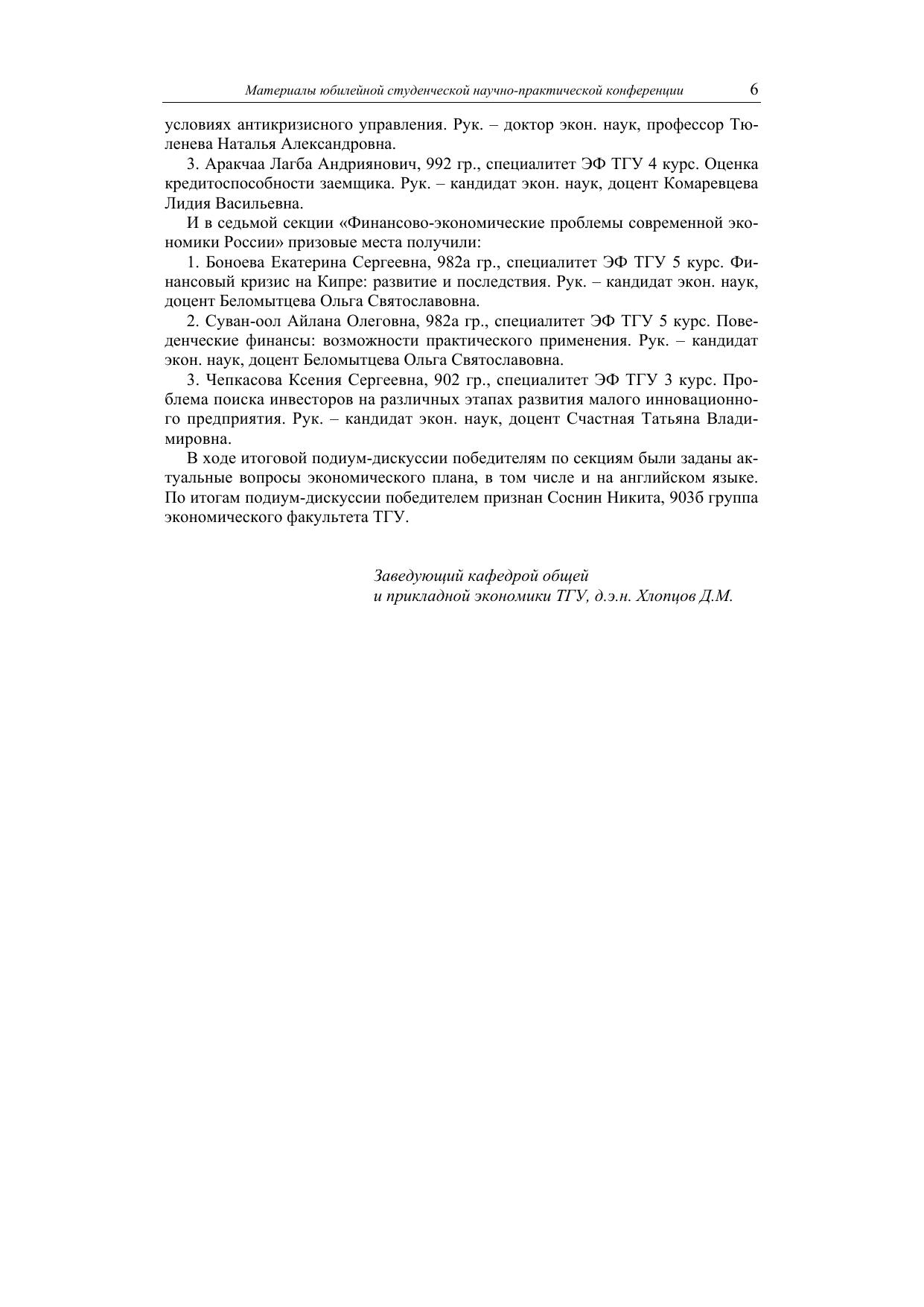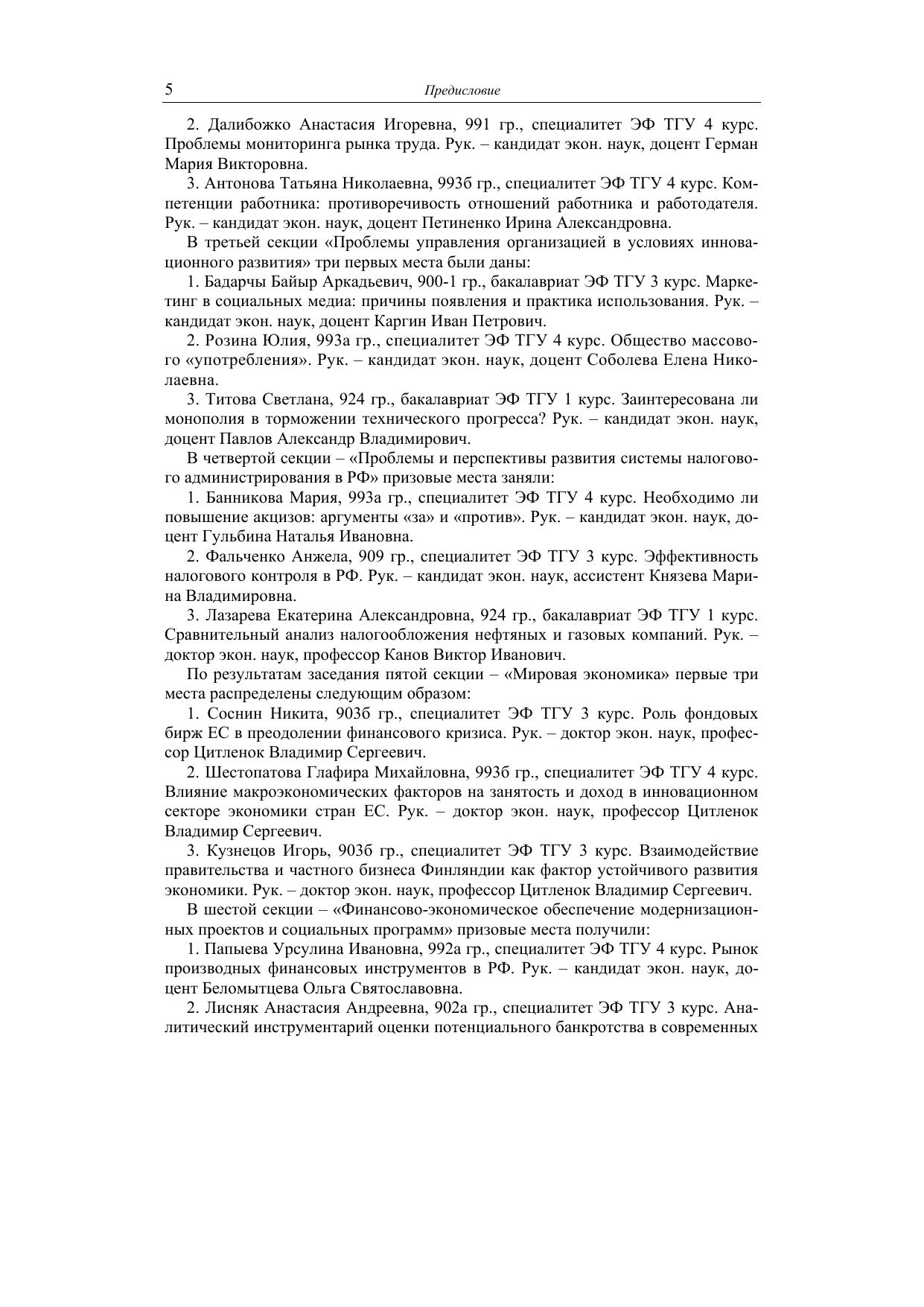 В сборнике материалов представлены статьи студентов, магистрантов и аспирантов экономического факультета ТГУ, посвященные анализу актуальных проблем российской экономики на современном этапе развития. Различные взгляды молодых ученых объединяют неравнодушие и творческий поиск, желание осветить результаты своего научного труда и продолжить исследования. В материалах рассматриваются вопросы модернизации российской экономики, эффективности предприятий, роли государства в рыночной системе, проводится сравнительный анализ опыта зарубежных стран и исследуются перспективы развития экономики России. Для специалистов в области общей и прикладной экономики.