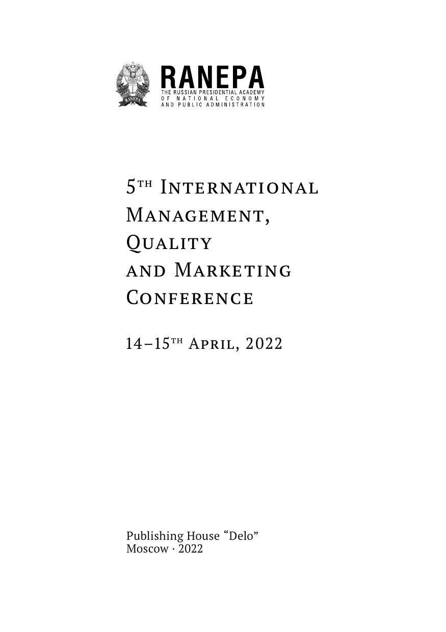 5th International Management, Quality and Marketing Conference. 14–15th April, 2022. (Пятая Международная конференция по менеджменту, качеству и маркетингу. 14–15 апреля 2022 года: на англ. языке)