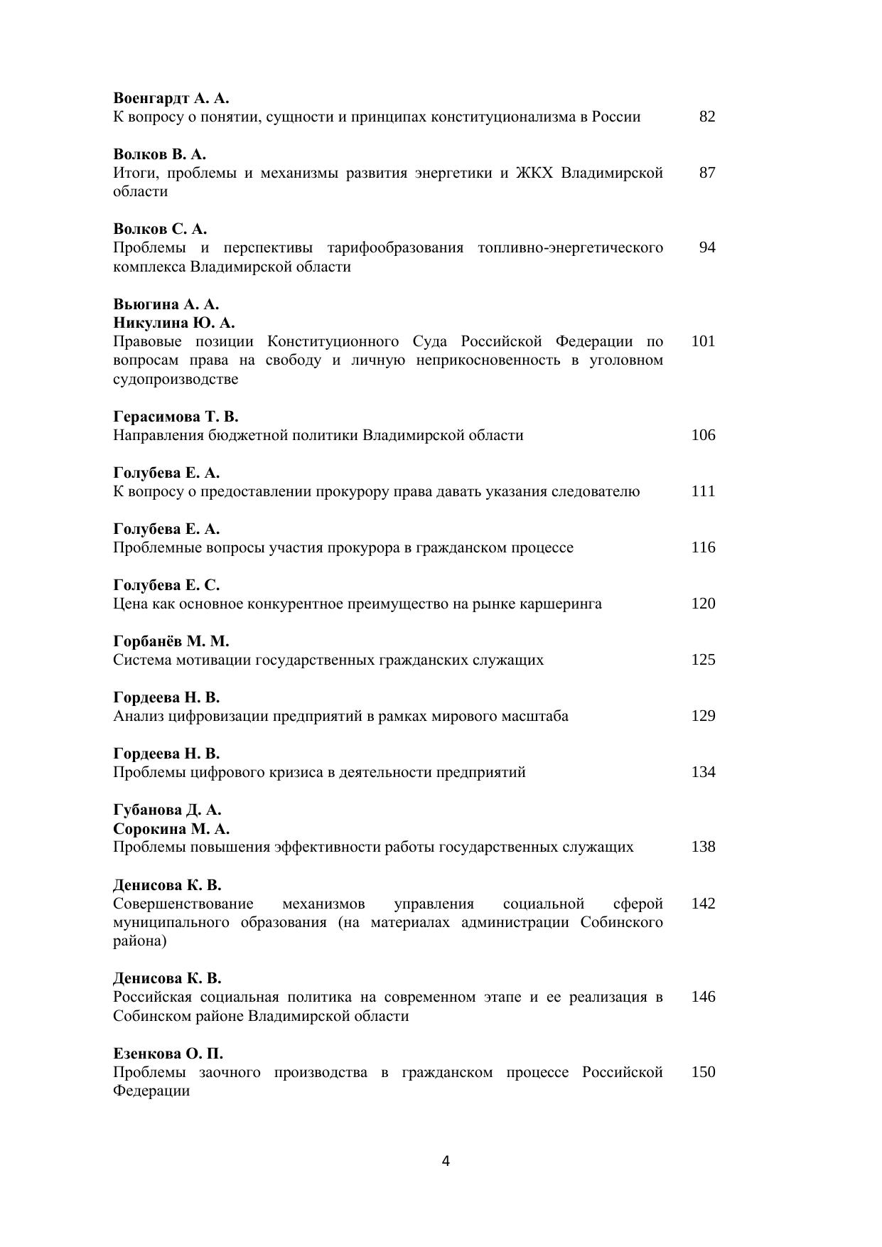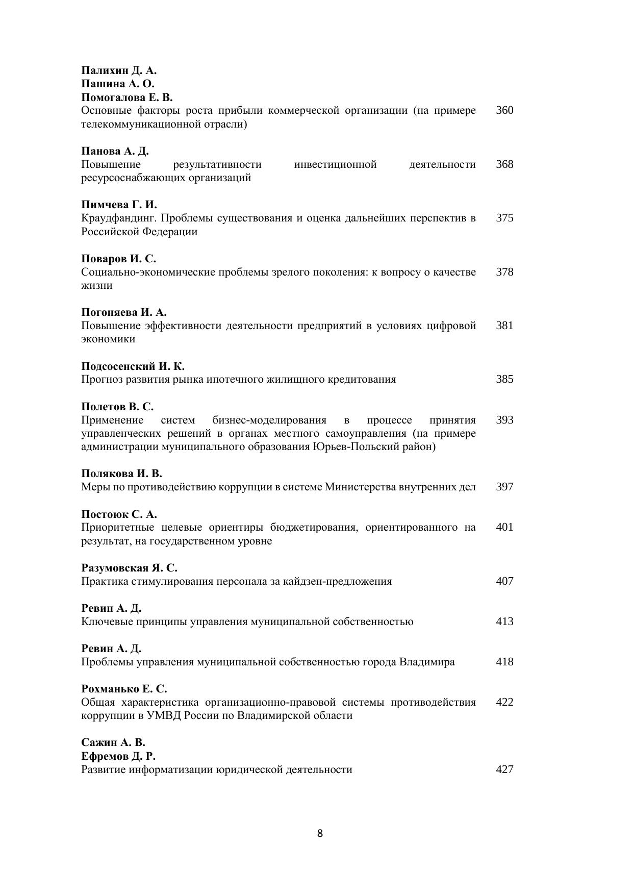 В сборнике научных работ представлены доклады и статьи молодых ученых – студентов и аспирантов, посвященные актуальным проблемам управления, экономики и права. Печатается по решению ученого совета Владимирского филиала РАНХиГС.