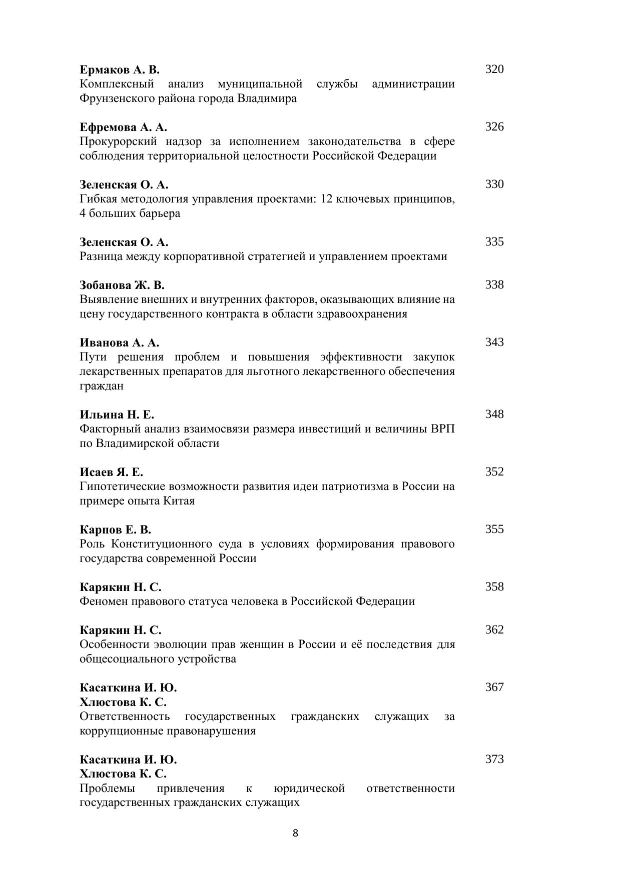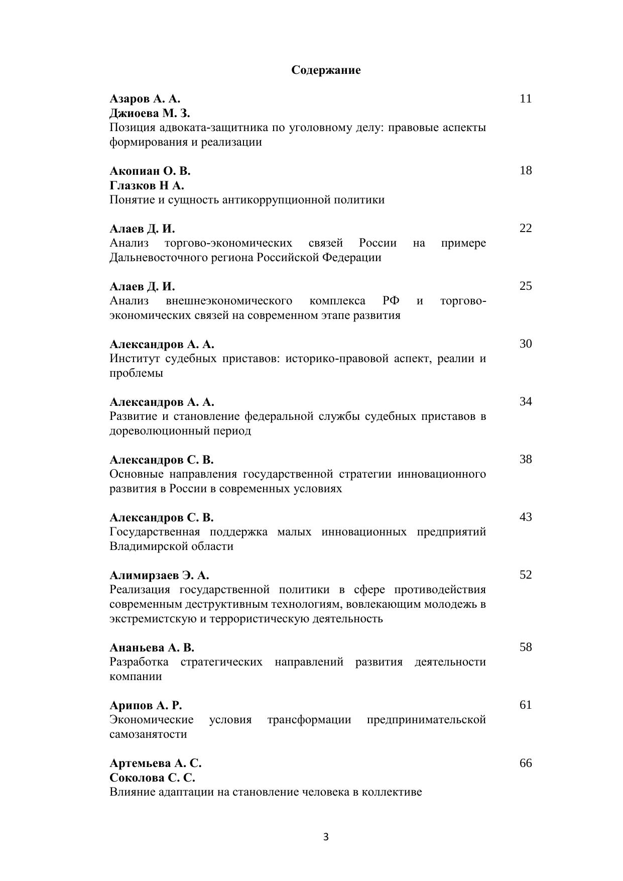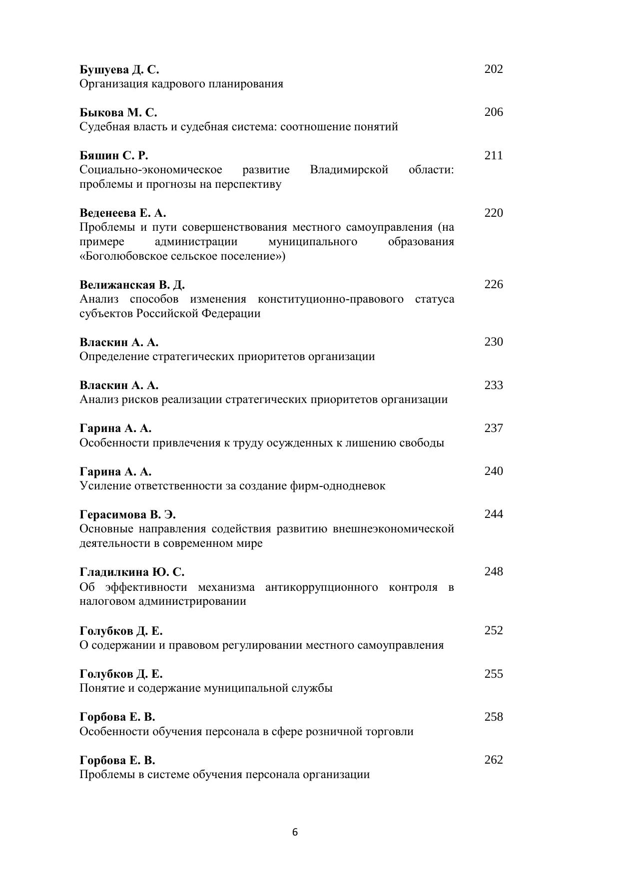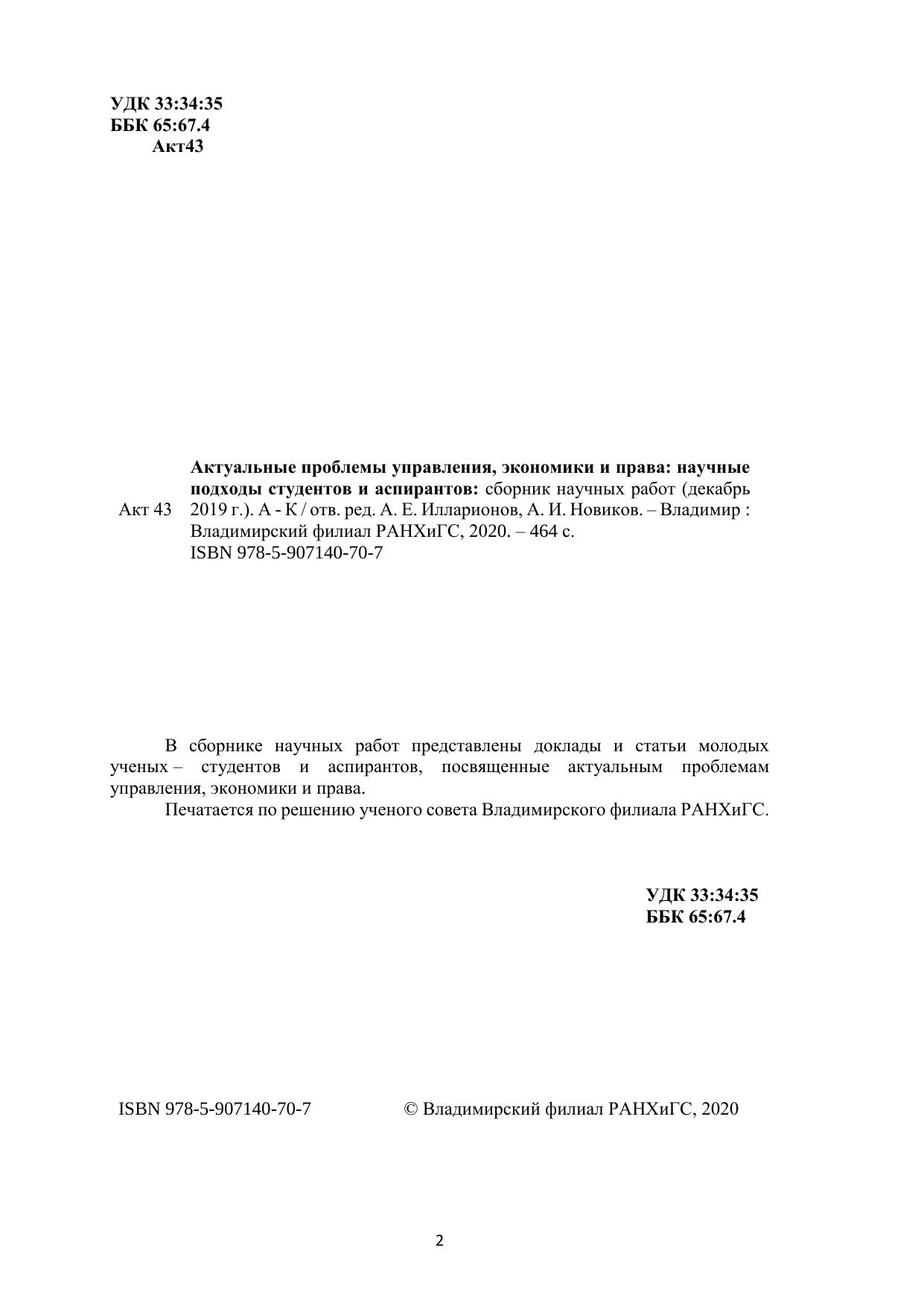 В сборнике научных работ представлены доклады и статьи молодых ученых – студентов и аспирантов, посвященные актуальным проблемам управления, экономики и права. Печатается по решению ученого совета Владимирского филиала РАНХиГС.