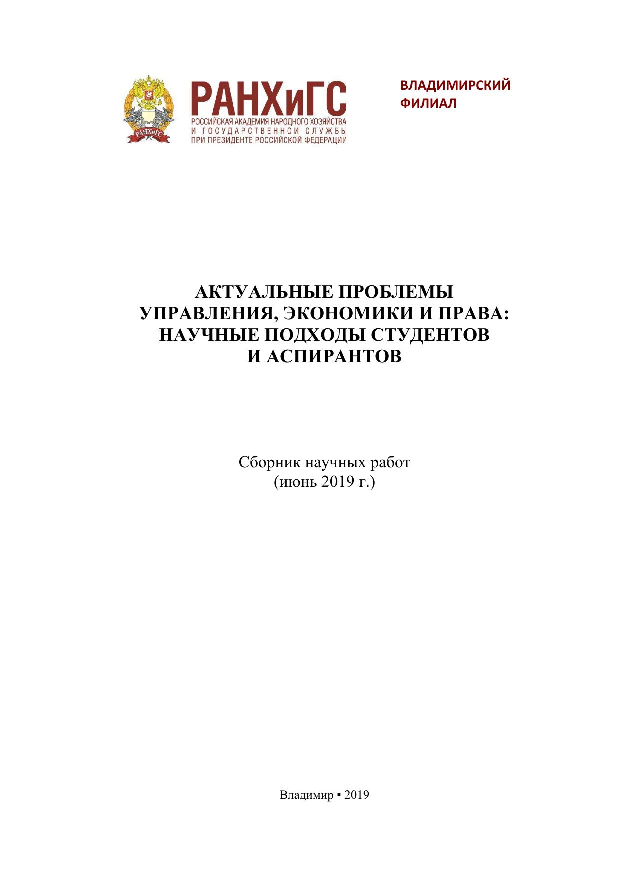 Актуальные проблемы управления, экономики и права: научные подходы студентов и аспирантов: сборник научных работ (июнь 2019 г.)