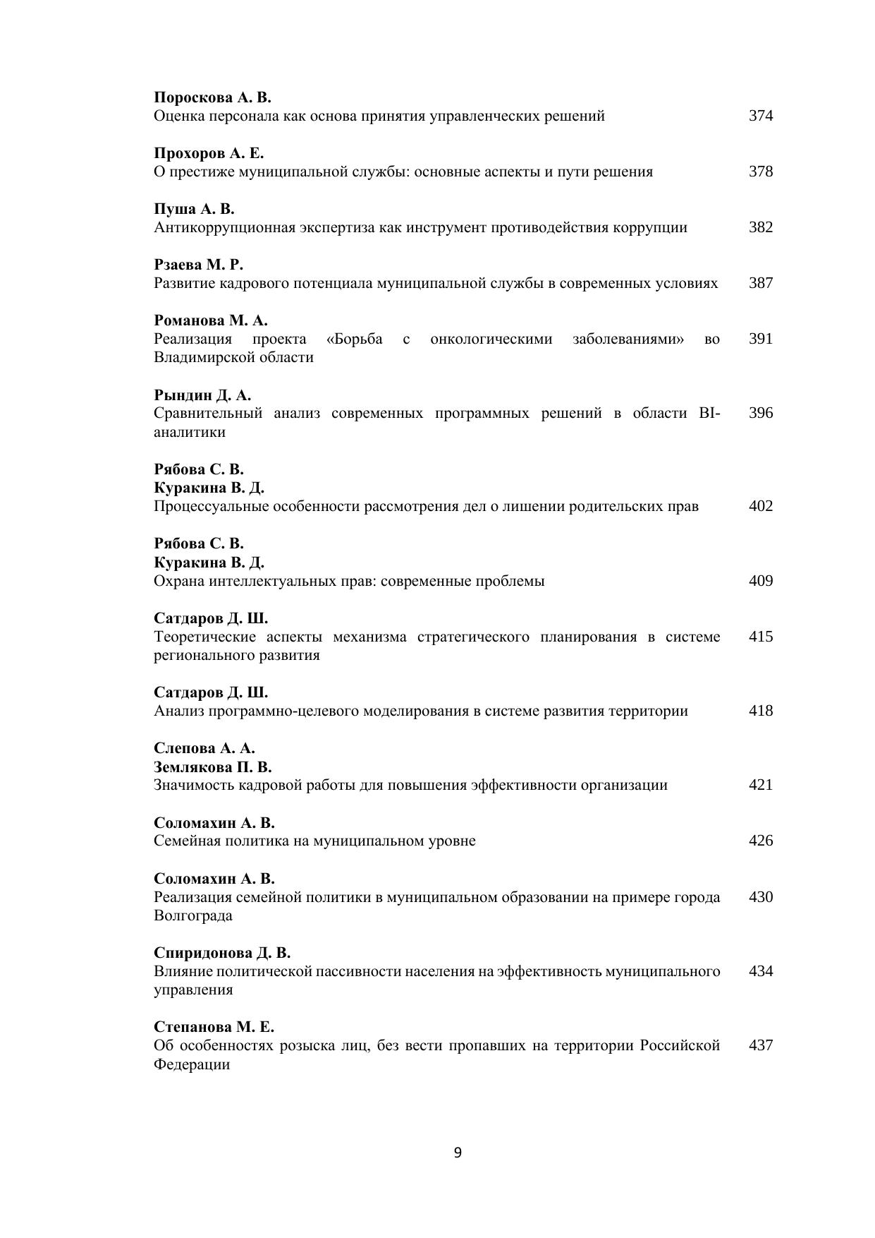 В сборнике представлены научные доклады и статьи молодых ученых – студентов и аспирантов, посвященные актуальным проблемам управления, экономики и права: кадровым технологиям на государственной и муниципальной службе, мотивации и стимулированию персонала, государственной поддержке малого и среднего предпринимательства, инвестиционной политике региона, общим и частным вопросам права, борьбе с коррупцией, вопросам организации и контроля за осуществлением государственных закупок и другим. Печатается по решению ученого совета Владимирского филиала РАНХиГС.