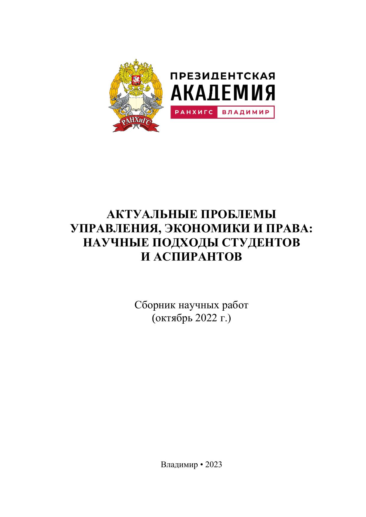Актуальные проблемы управления, экономики и права: научные подходы студентов и аспирантов: сборник научных работ (октябрь 2022 г.)
