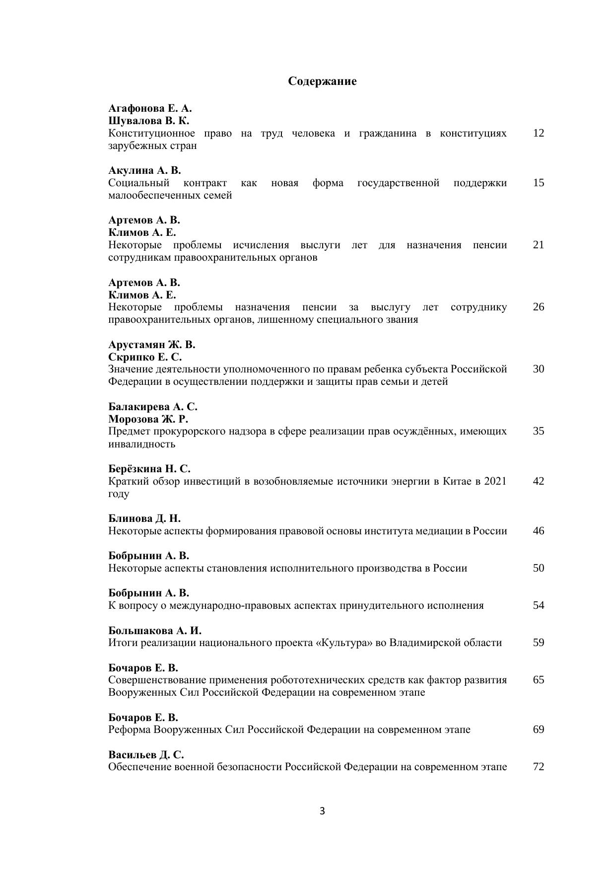 В сборнике научных работ представлены научные доклады и статьи молодых ученых – студентов и аспирантов, посвященные актуальным проблемам управления, экономики и права: реформированию вооруженных сил, вопросам пенсионного обеспечения, мотивации и стимулированию персонала, развитию государственно-частного партнерства, инвестиционной политике государства, региона и муниципалитетов, проблемам импортозамещения, развитию информационной сферы, общим и частным вопросам права, борьбе с коррупцией, вопросам организации и контроля за осуществлением государственных закупок, управлению экономикой в условиях пандемии COVID-19, реализации национальных проектов и другим. Печатается по решению ученого совета Владимирского филиала РАНХиГС.