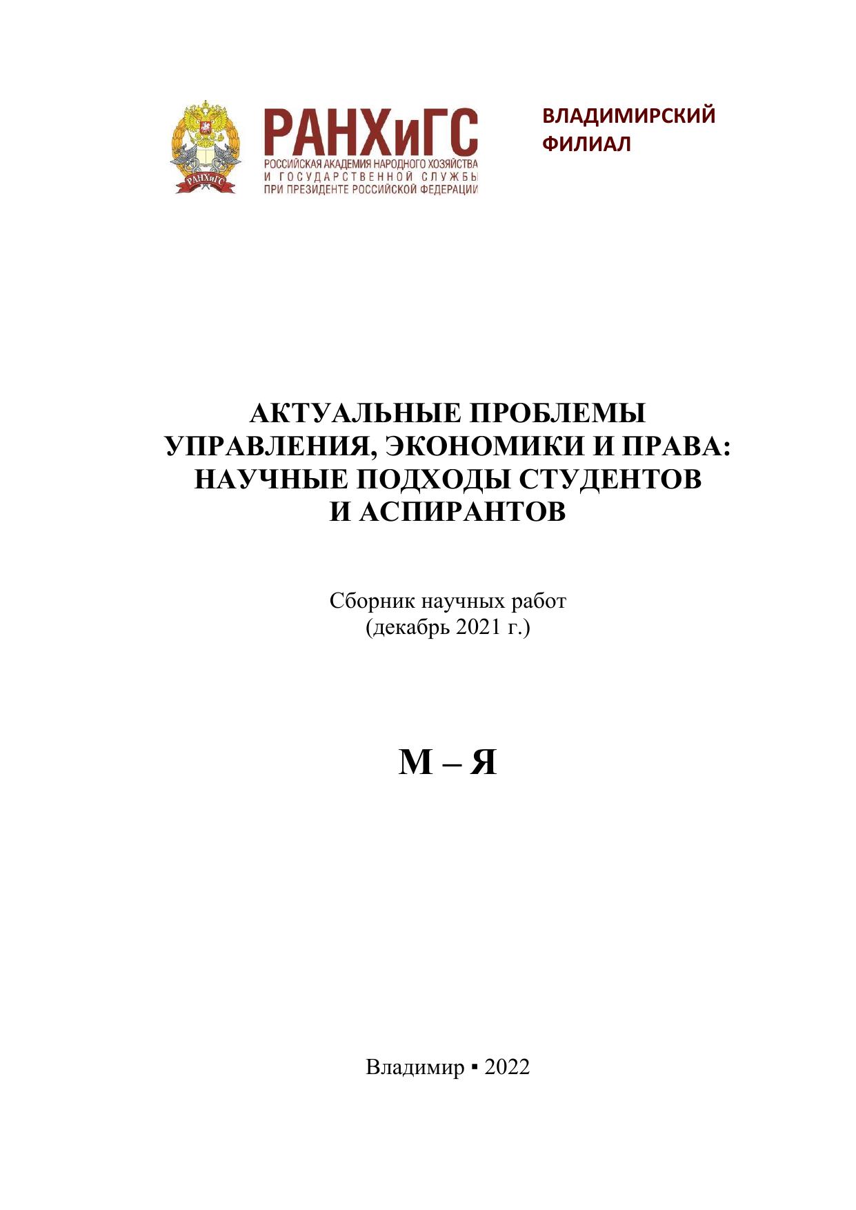 Актуальные проблемы управления, экономики и права: научные подходы студентов и аспирантов: сборник научных работ (декабрь 2021 г.). М – Я