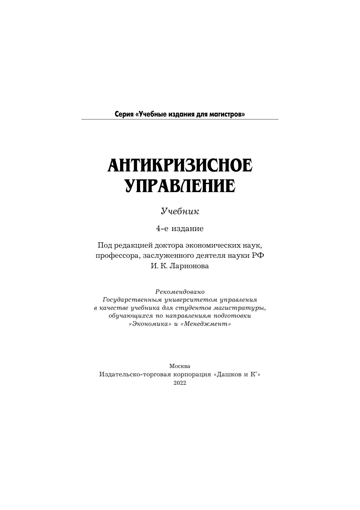 В учебнике раскрыты основы антикризисного управления, используемого в качестве противодействия кризисным процессам на всех уровнях экономики. Охарактеризован механизм системного экономического кризиса. Представлена система мер