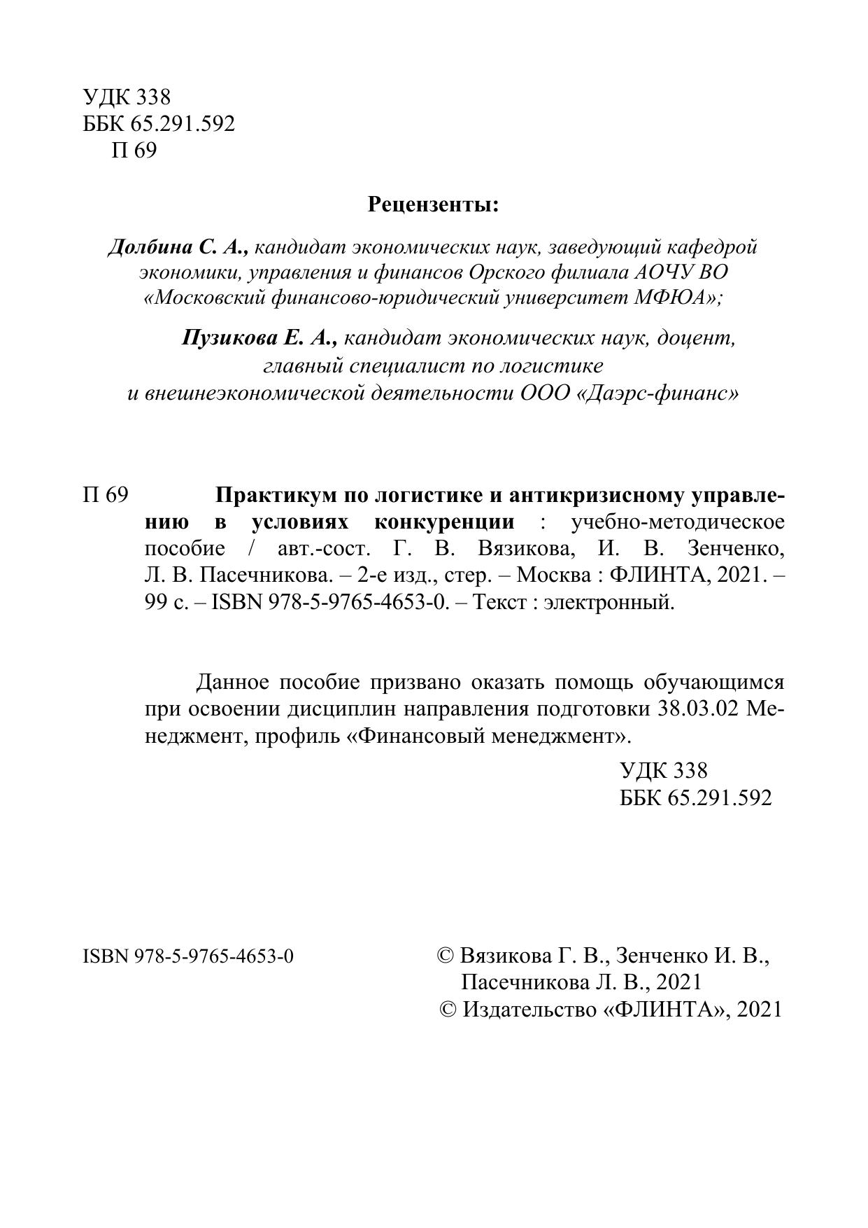Практикум по логистике и антикризисному управлению в условиях конкуренции