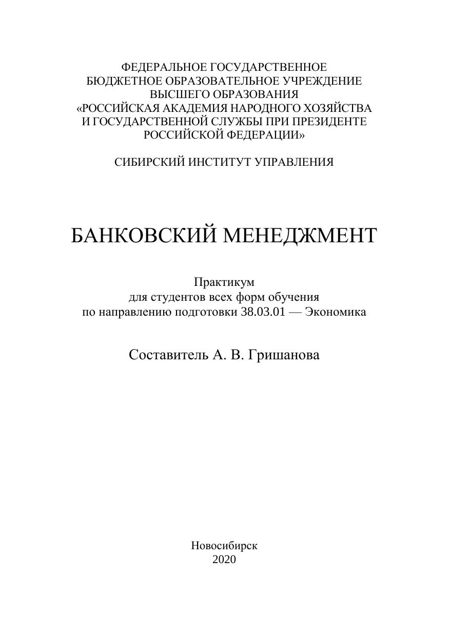Практикум содержит учебный материал по банковскому менеджменту, тематику рефератов, тесты, задания для самостоятельной работы, кроссворды, задачи и упражнения для самостоятельного формирования практических навыков, что позволит студентам усвоить, систематизировать и закрепить пройденные во время лекционных занятий материал. Учебный практикум предназначен для бакалавров, обучающихся по направлению подготовки 38.03.01 — Экономика, изучающих дисциплину «Банковский менеджмент».
