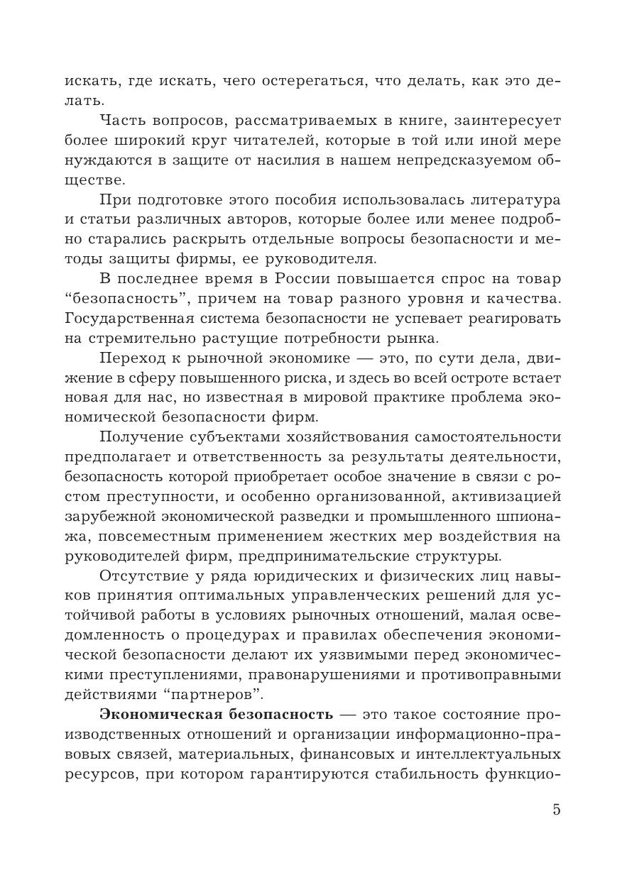 В книге рассматриваются практические вопросы обеспечения экономической безопасности фирм: организация работы служб безопасности, защита коммерческой тайны, информационных ресурсов, обеспечение безопасности внешней деятельности, личной безопасности руководителей и персонала, в том числе и в зарубежных поездках. Особое внимание уделяется вопросам обеспечения информационной безопасности и защиты информации в офисной деятельности и предпринимательских структурах различного типа, работы с персоналом, владеющим конфиденциальной информацией. Излагаются вопросы защиты информации при проведении переговоров и совещаний, приеме посетителей, защиты персональных данных в кадровой службе, а также направления разработки нормативнометодической документации комплексной защиты информации фирмы. Для руководителей фирм и организаций всех форм собственности и хозяйствования, банковских и финансовых учреждений, охранных фирм и агентств.