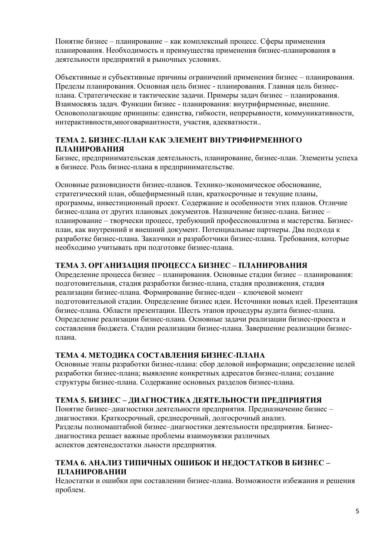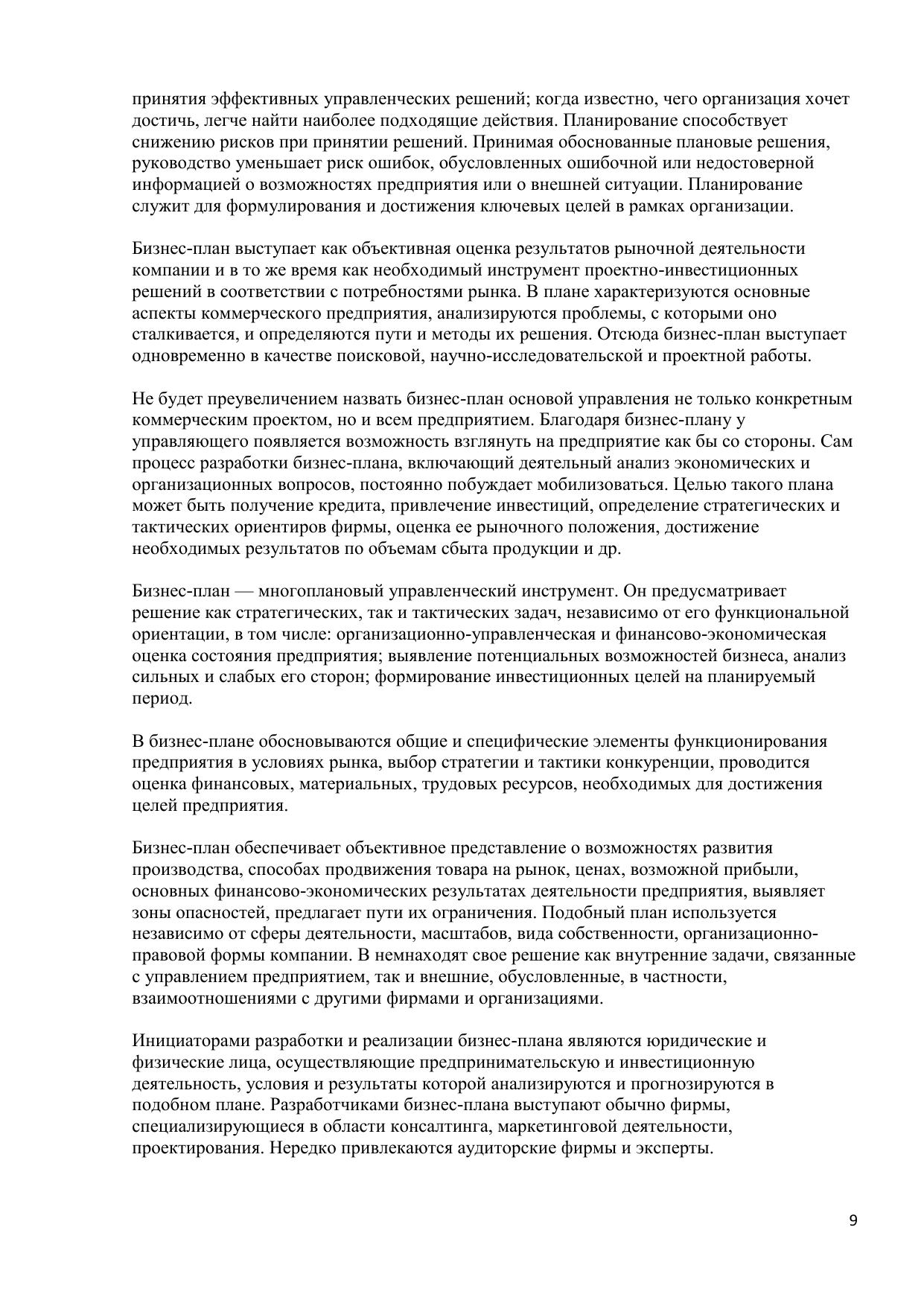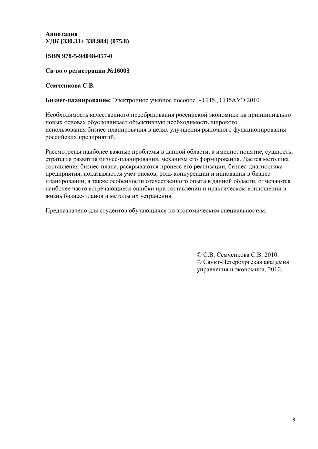 Необходимость качественного преобразования российской экономики на принципиально новых основах обусловливает объективную необходимость широкого использования бизнес-планирования в целях улучшения рыночного функционирования российских предприятий. Рассмотрены наиболее важные проблемы в данной области, а именно: понятие, сущность, стратегия развития бизнес-планирования, механизм его формирования. Дается методика составления бизнес-плана, раскрываются процесс его реализации, бизнес-диагностика предприятия, показываются учет рисков, роль конкуренции и инновации в бизнес-планировании, а также особенности отечественного опыта в данной области, отмечаются наиболее часто встречающиеся ошибки при составлении и практическом воплощении в жизнь бизнес-планов и методы их устранения. Предназначено для студентов, обучающихся по экономическим специальностям. Электронное учебное пособие для дистанционного обучения