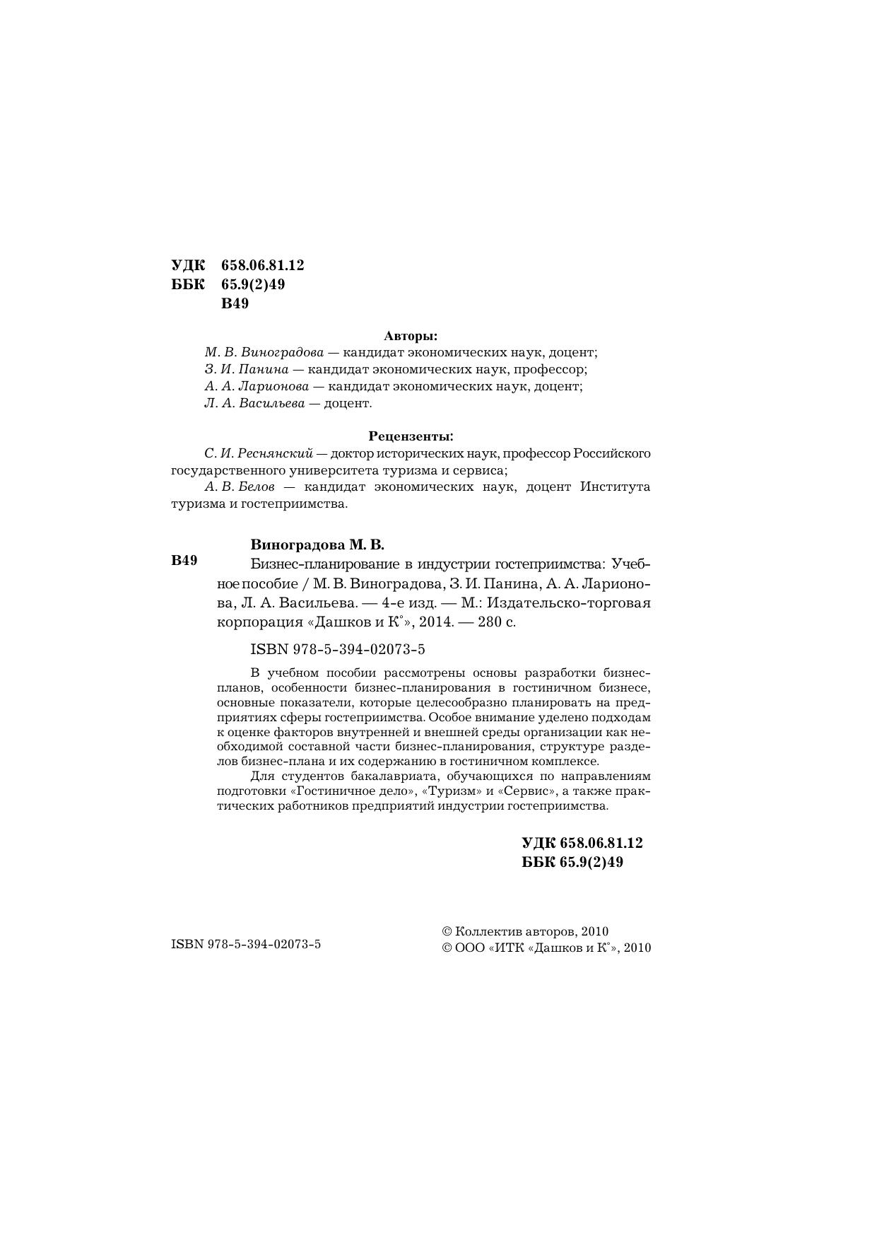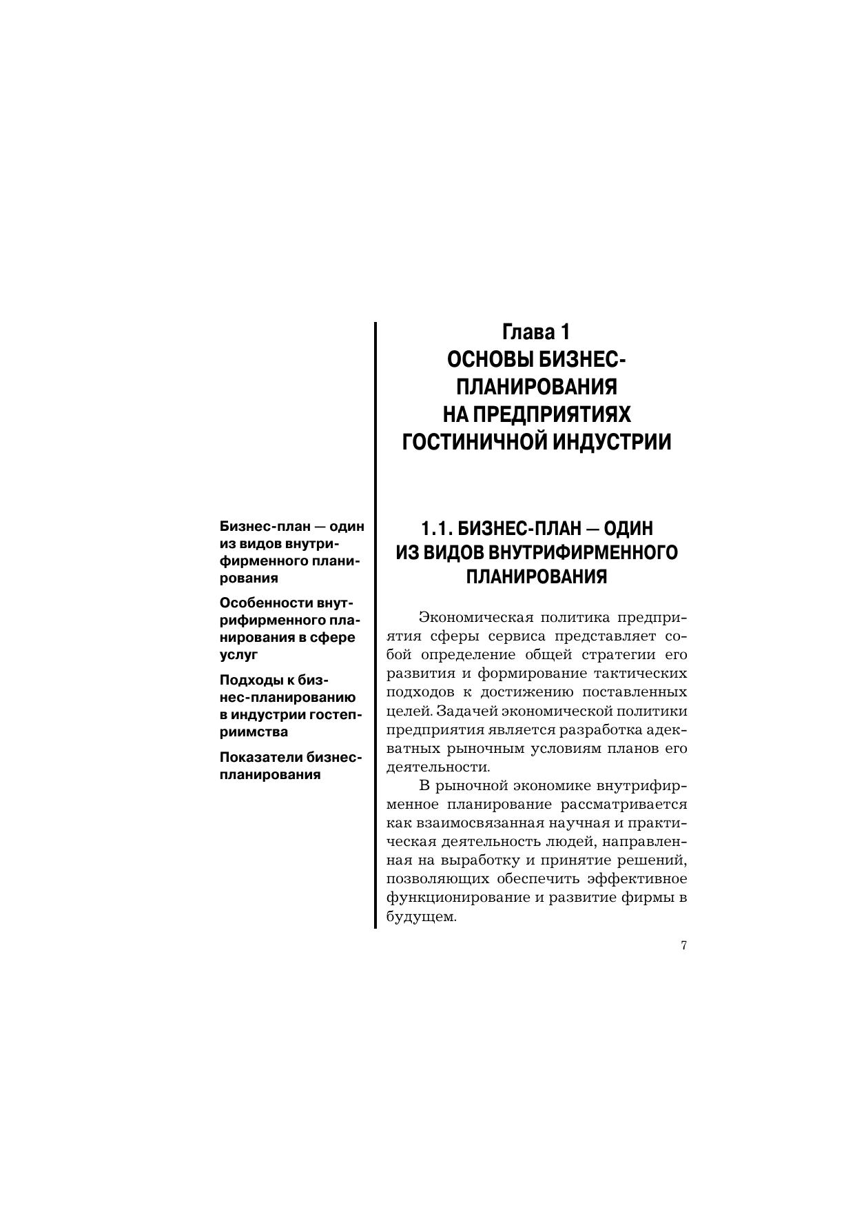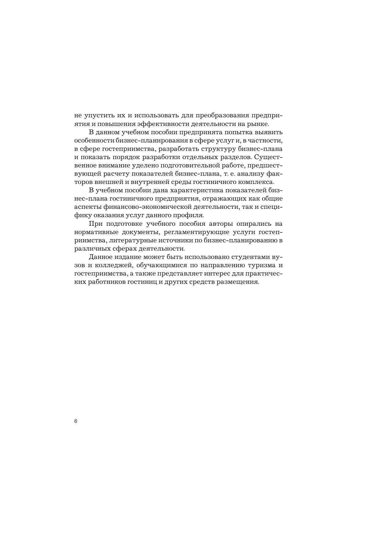 В учебном пособии рассмотрены основы разработки бизнес-планов, особенности бизнес-планирования в гостиничном бизнесе, основные показатели, которые целесообразно планировать на предприятиях сферы гостеприимства. Особое внимание уделено подходам к оценке факторов внутренней и внешней среды организации как необходимой составной части бизнес-планирования, структуре разделов бизнес-плана и их содержанию в гостиничном комплексе. Для студентов бакалавриата, обучающихся по направлениям подготовки «Гостиничное дело», «Туризм» и «Сервис», а также практических работников предприятий индустрии гостеприимства.