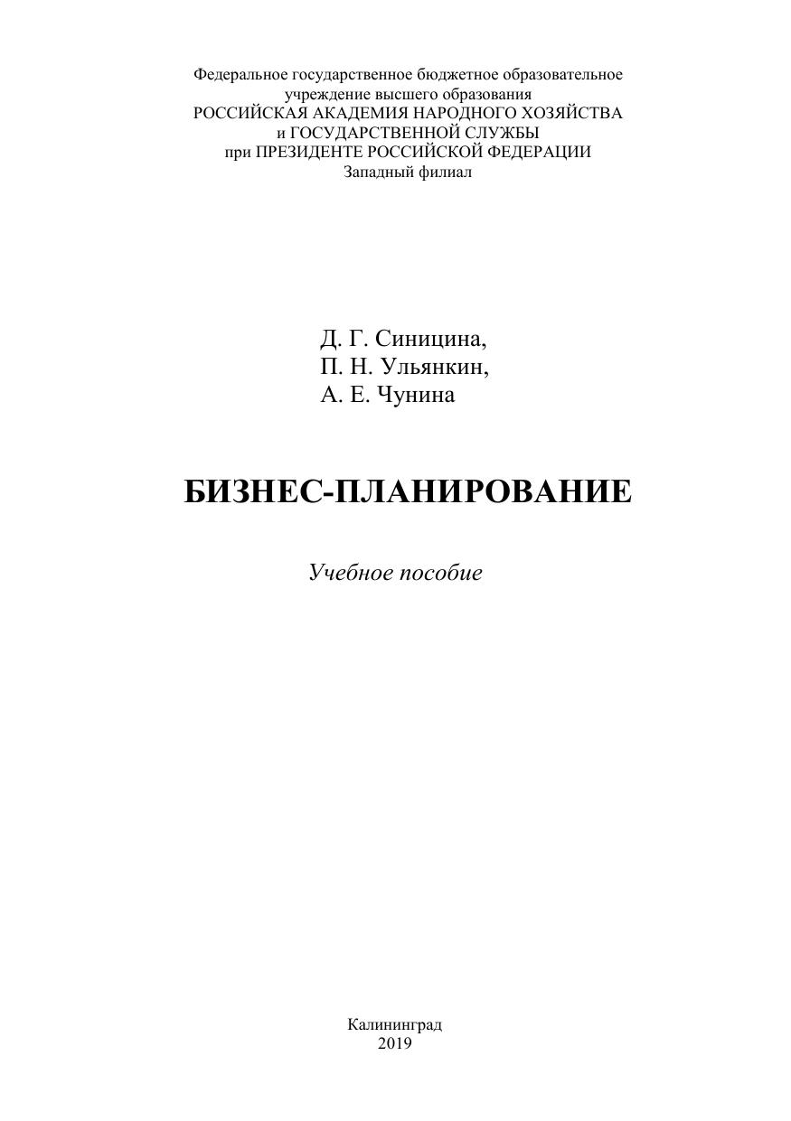 Учебное пособие предназначено для изучения дисциплины «Бизнес-планирование» студентами экономических специальностей, в том числе для под-готовки к практическим занятиям, зачетам и экзаменам, а также для выполнения контрольных работ. Пособие содержит краткий конспект лекций по темам, представляющим наибольшую сложность для изучения, контрольные вопросы, практические зада-ния, а также тест для самопроверки студентами знаний. Пособие предназначено для методического обеспечения практических занятий и самостоятельной работы студентов, а также контроля качества знаний студентов очной и заочной форм обучения, обучающихся по направлениям подготовки 38.03.01 «Экономика», 38.03.02 «Менеджмент», 38.03.04 «Государственное и му-ниципальное управление». В пособии предлагаются контрольные вопросы по изучаемым разделам дис-циплины, задачи, тесты, методика расчета отдельных показателей.