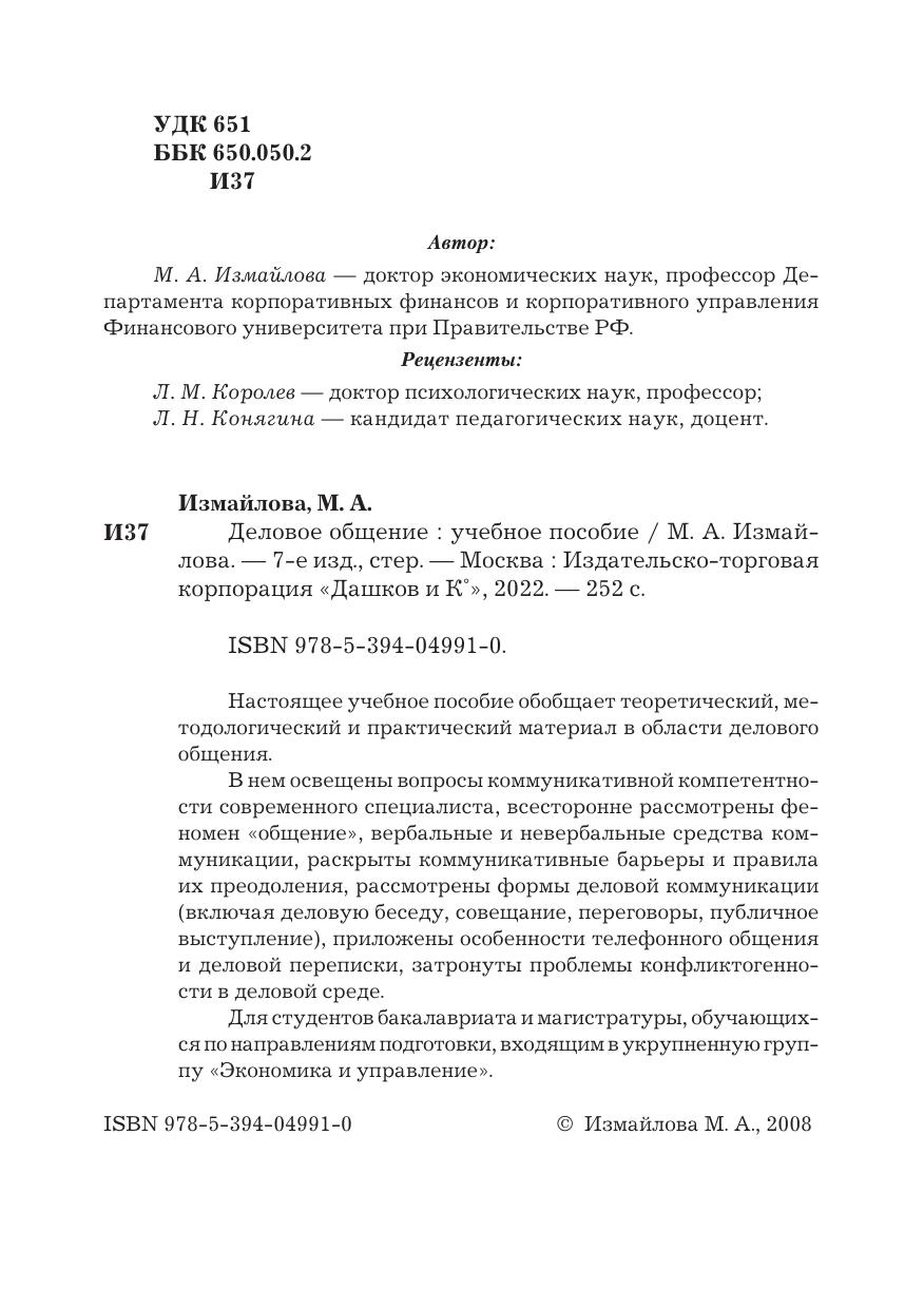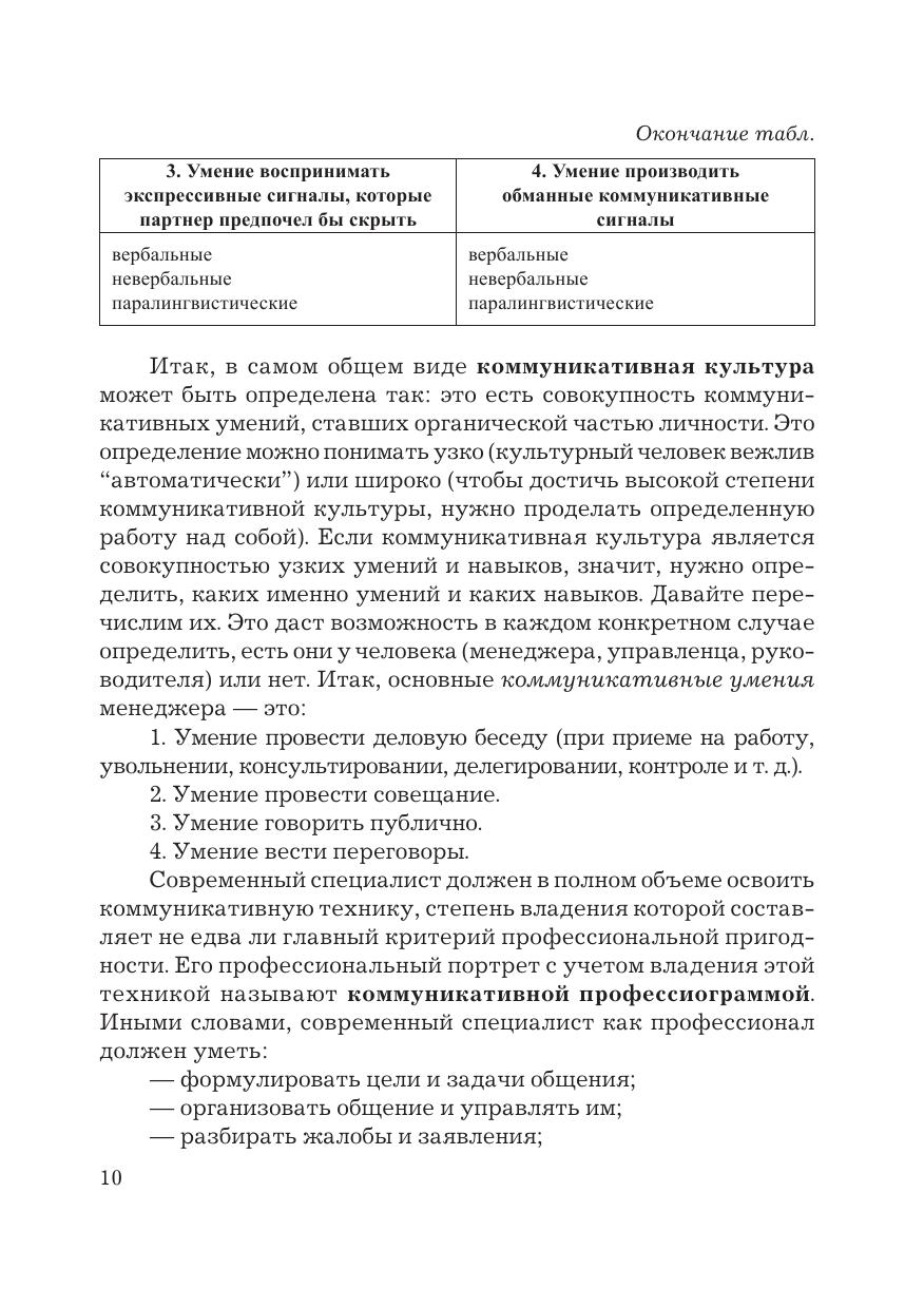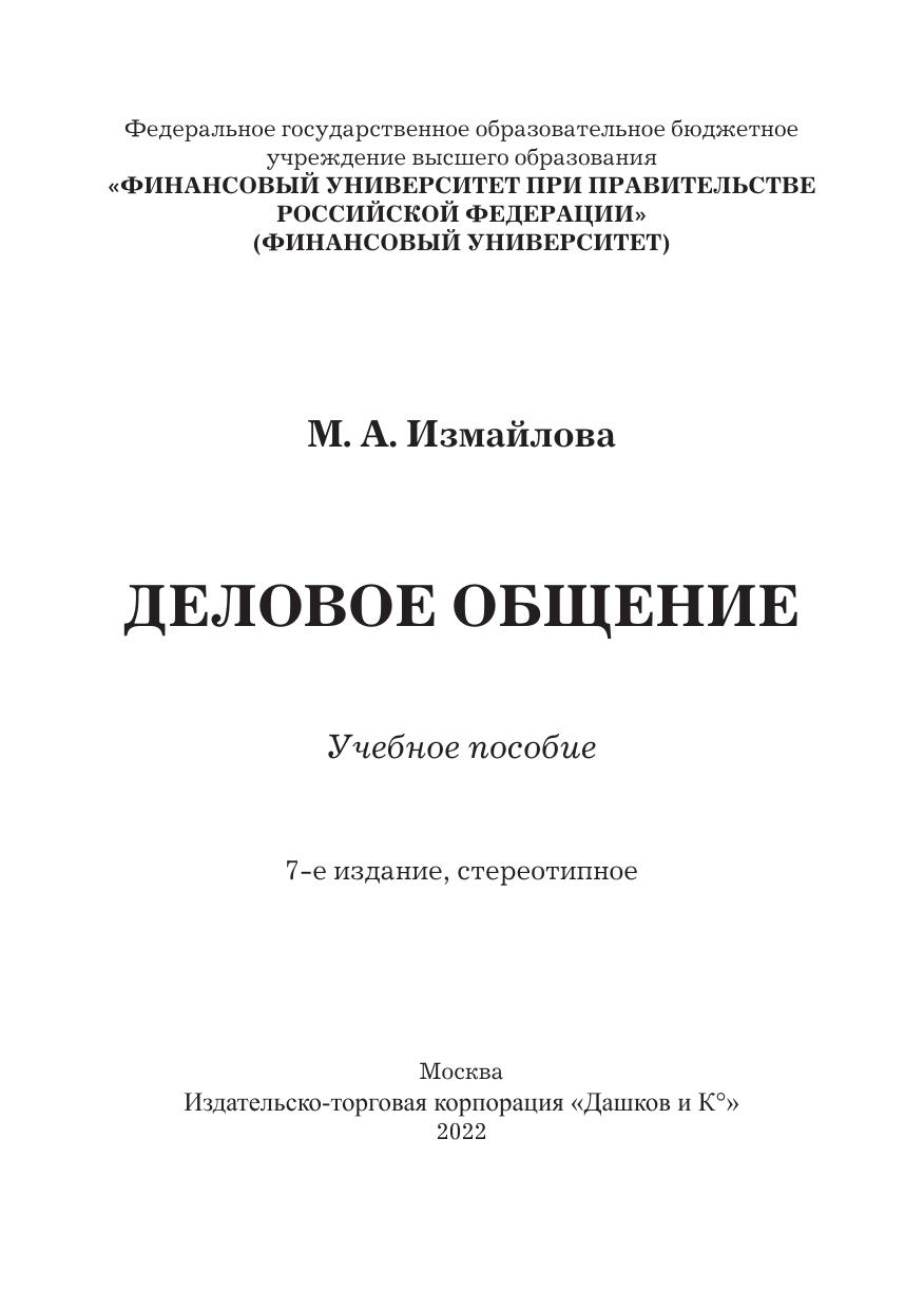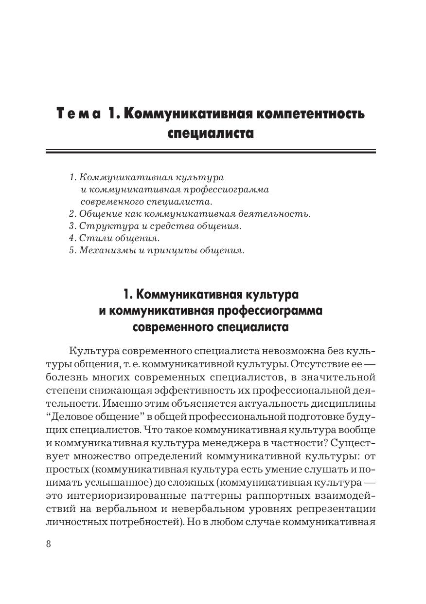 Настоящее учебное пособие обобщает теоретический, методологический и практический материал в области делового общения. В нем освещены вопросы коммуникативной компетентности современного специалиста, всесторонне рассмотрены феномен «общение», вербальные и невербальные средства коммуникации, раскрыты коммуникативные барьеры и правила их преодоления, рассмотрены формы деловой коммуникации (включая деловую беседу, совещание, переговоры, публичное выступление), приложены особенности телефонного общения и деловой переписки, затронуты проблемы конфликтогенности в деловой среде. Для студентов бакалавриата и магистратуры, обучающихся по направлениям подготовки, входящим в укрупненную группу «Экономика и управление».