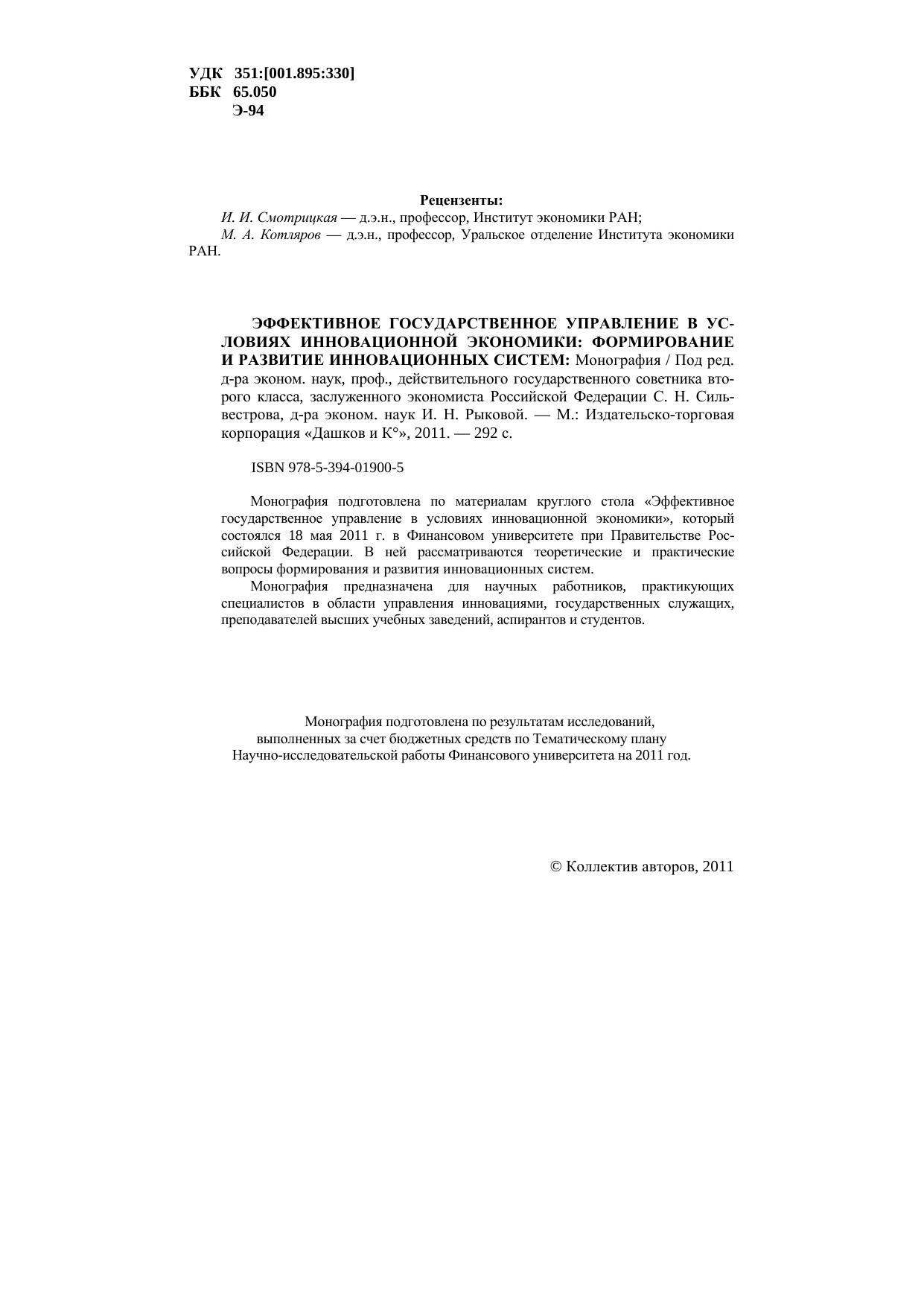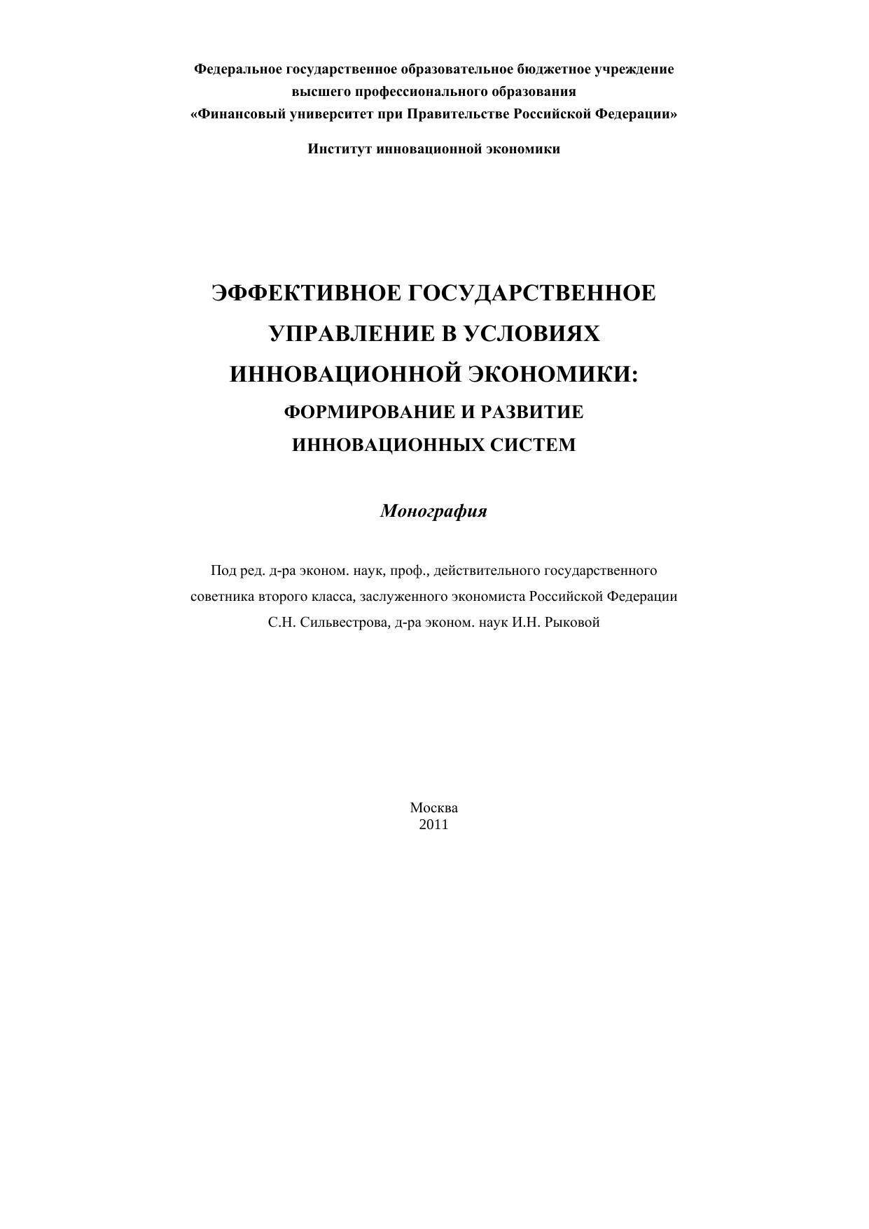 Эффективное государственное управление в условиях инновационной экономики: Формирование и развитие инновационных систем: Монография