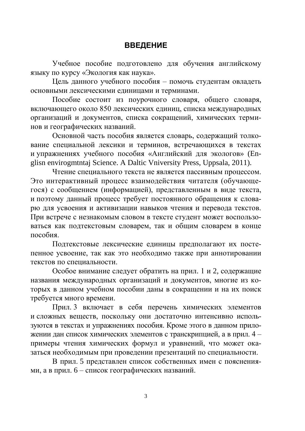 Цель пособия – расширение словарного запаса для профессионально-ориентированного чтения и коммуникации на английском языке. Рекомендовано для бакалавров и магистрантов профилей 241000.01.62, 241000.01.68, 241000.02.68, специализирующихся в области охраны окружающей среды и природопользования.