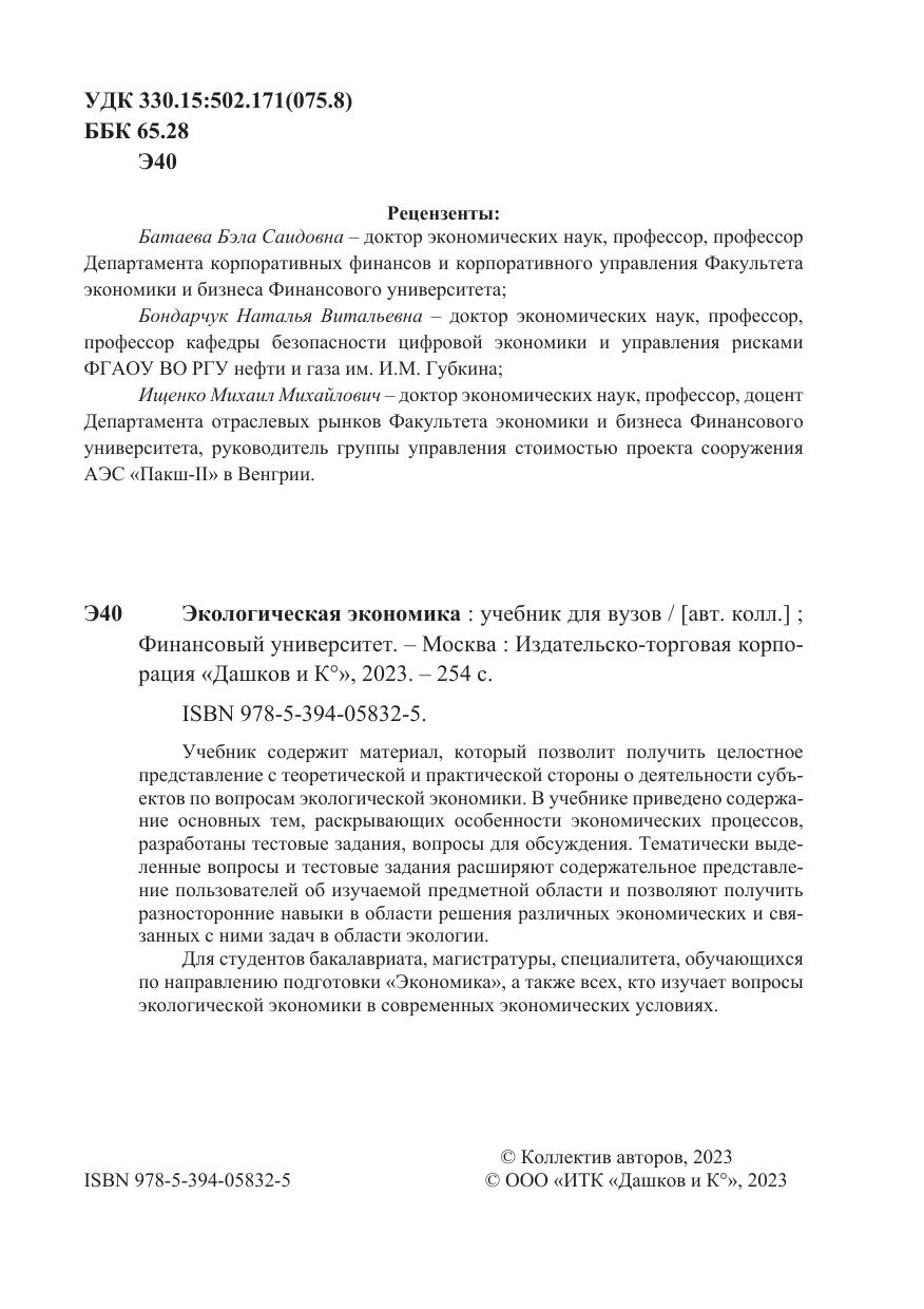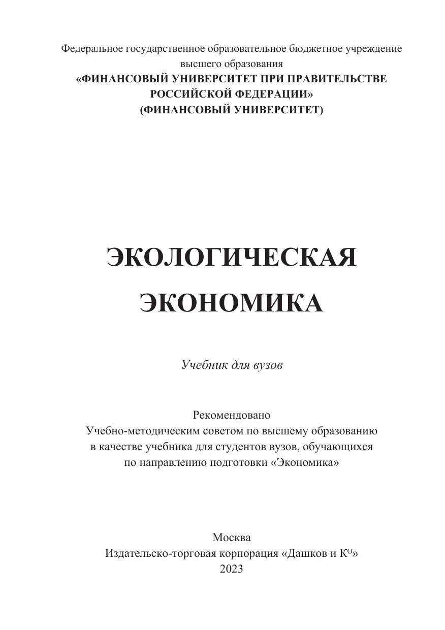 Для студентов бакалавриата, магистратуры, специалитета, обучающихся по направлению подготовки «Экономика», а также всех, кто изучает вопросы экологической экономики в современных экономических условиях. Гриф.