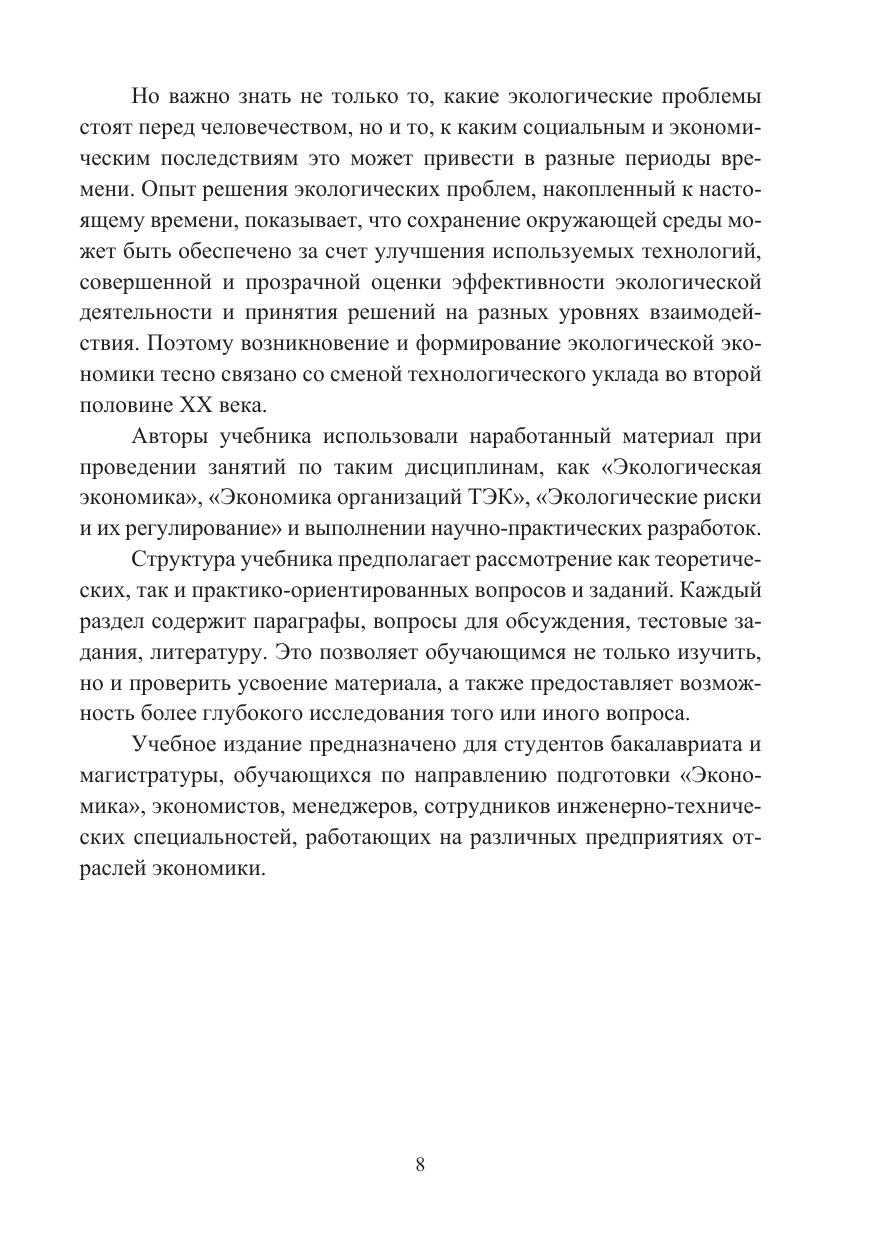 Учебник содержит материал, который позволит получить целостное представление с теоретической и практической стороны о деятельности субъектов по вопросам экологической экономики. В учебнике приведено содержание основных тем, раскрывающих особенности экономических процессов, разработаны тестовые задания, вопросы для обсуждения. Тематически выделенные вопросы и тестовые задания расширяют содержательное представление пользователей об изучаемой предметной области и позволяют получить разносторонние навыки в области решения различных экономических и связанных с ними задач в области экологии.