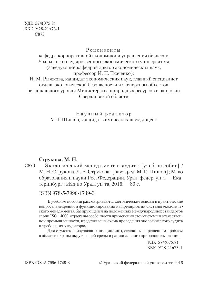 В учебном пособии рассматриваются методические основы и практические вопросы внедрения и функционирования на предприятии системы экологического менеджмента, базирующейся на положениях международных стандартов серии ISO 14000, отражены особенности применения этой системы в отечественной промышленности, представлены схема проведения экологического аудита и требования к аудиторам. Для студентов, изучающих дисциплины, связанные с решением проблем в области охраны окружающей среды и рационального природопользования.