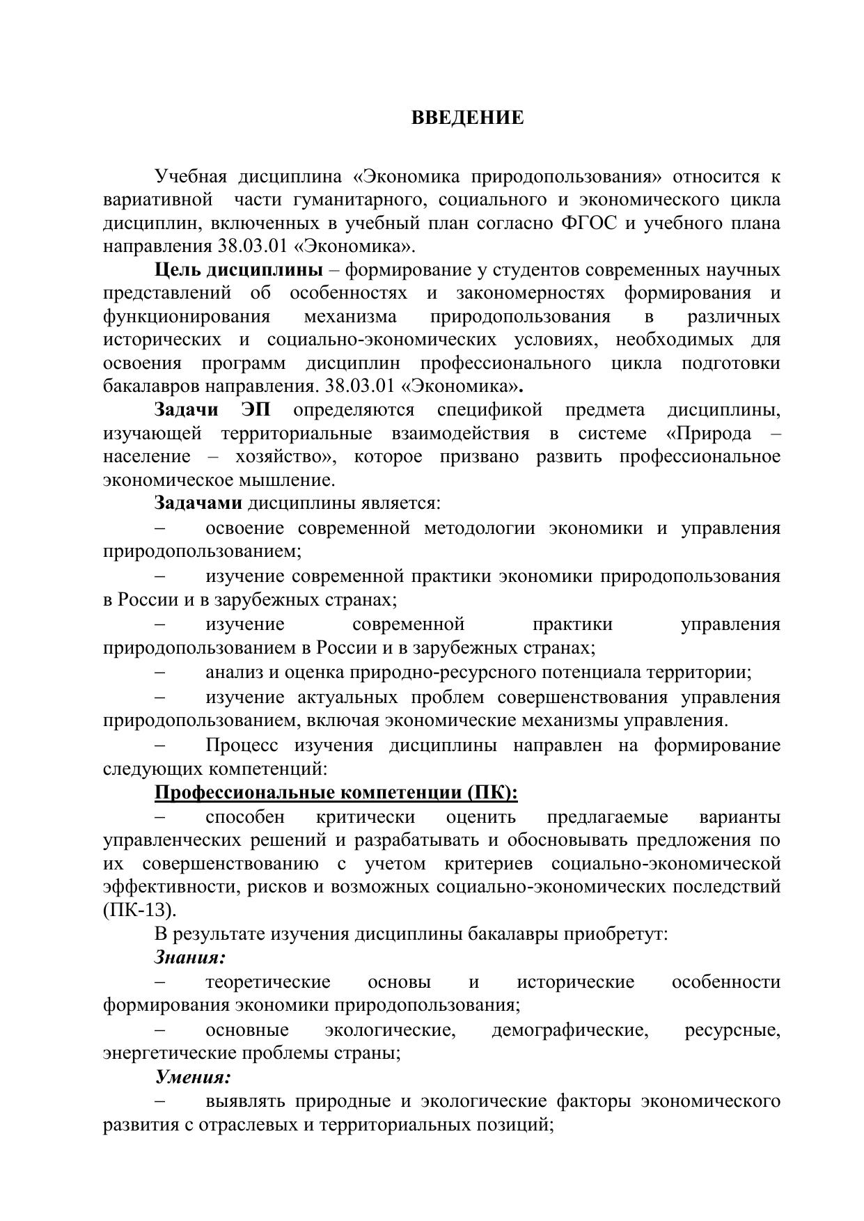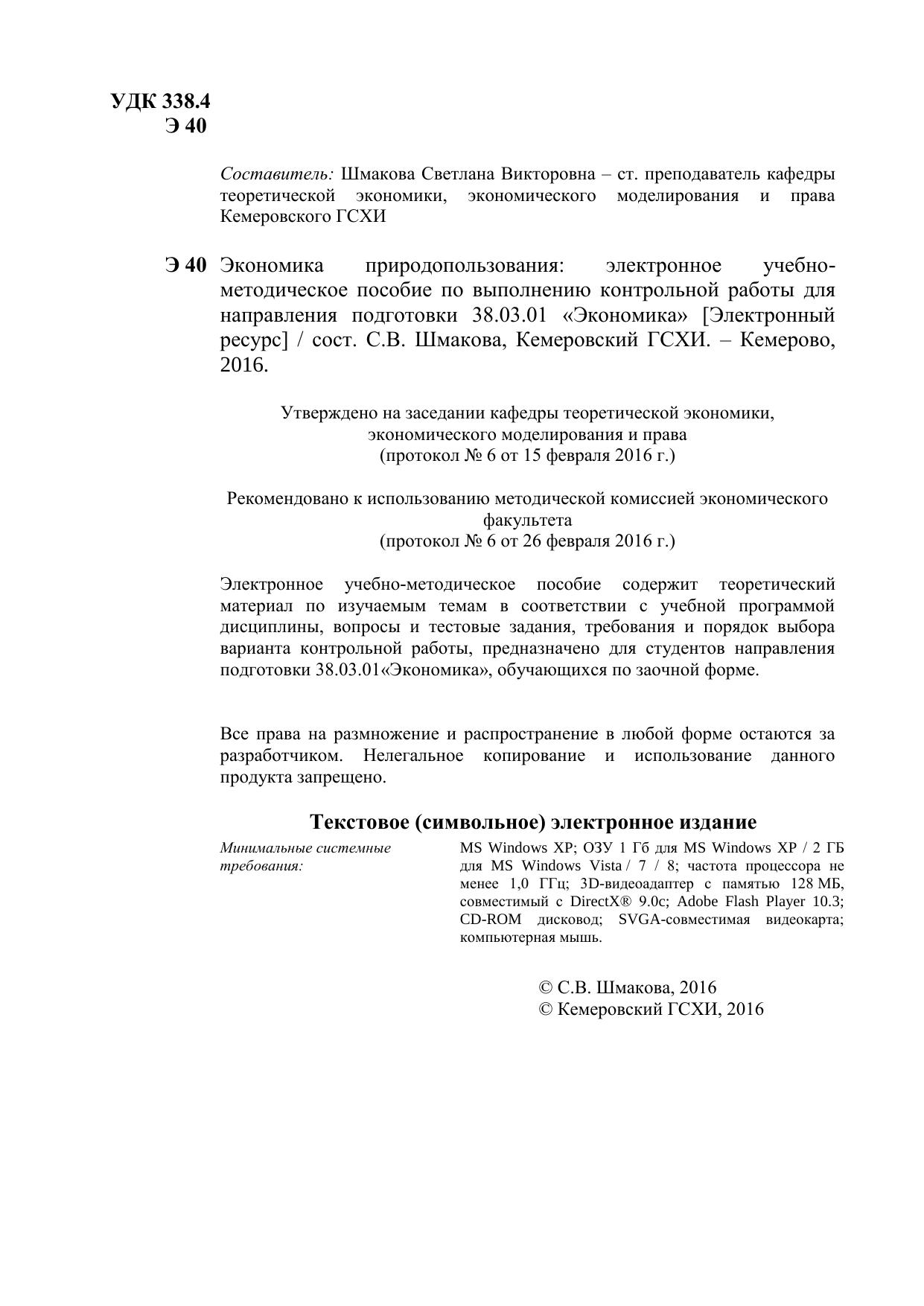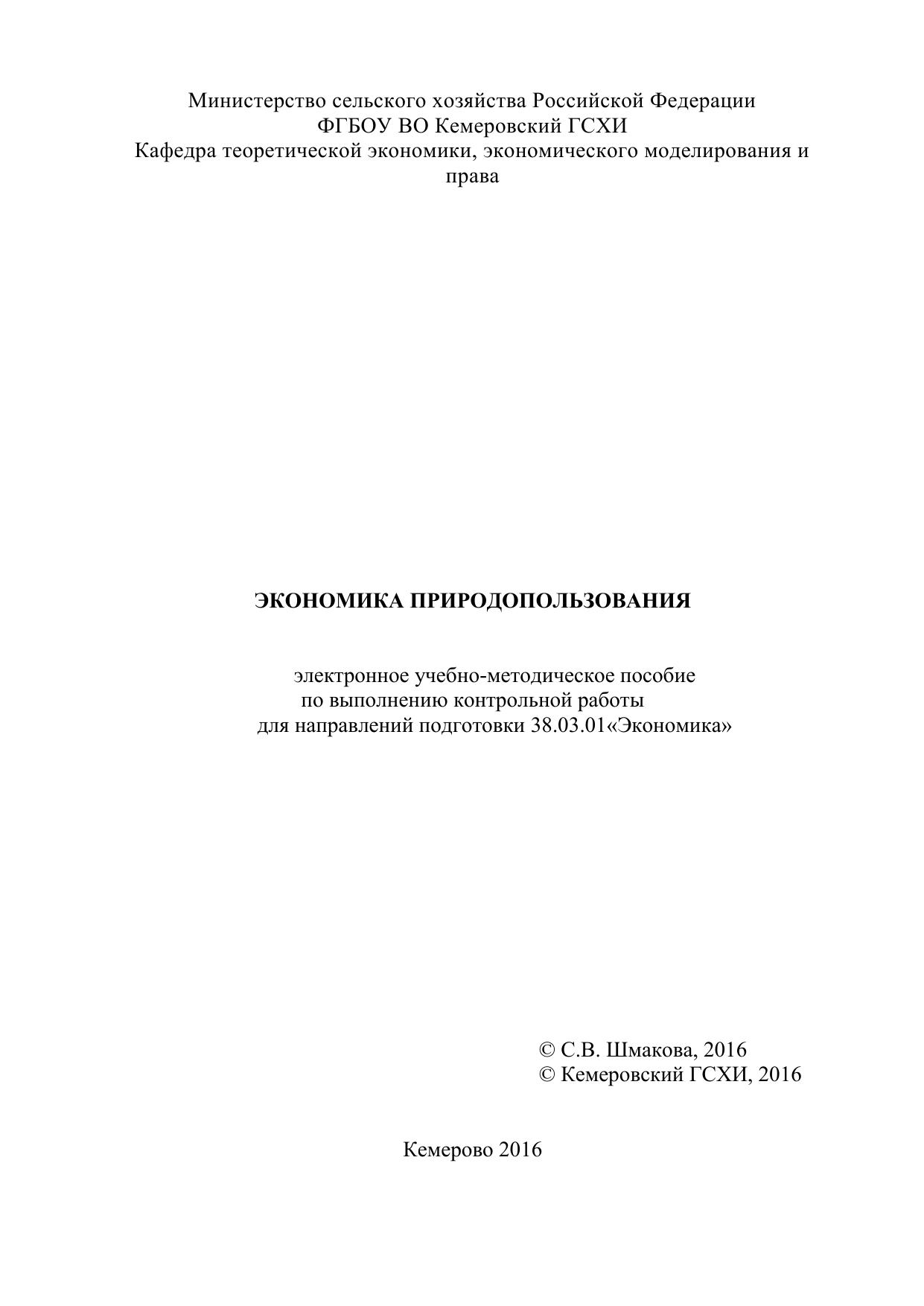 Экономика природопользования: электронное учебно-методическое пособие по выполнению контрольной работы для направления подготовки 38.03.01 «Экономика»