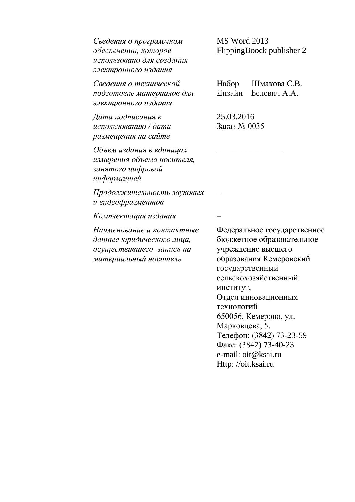 Издательство: Кузбасская государственная селькохозяйственная академия