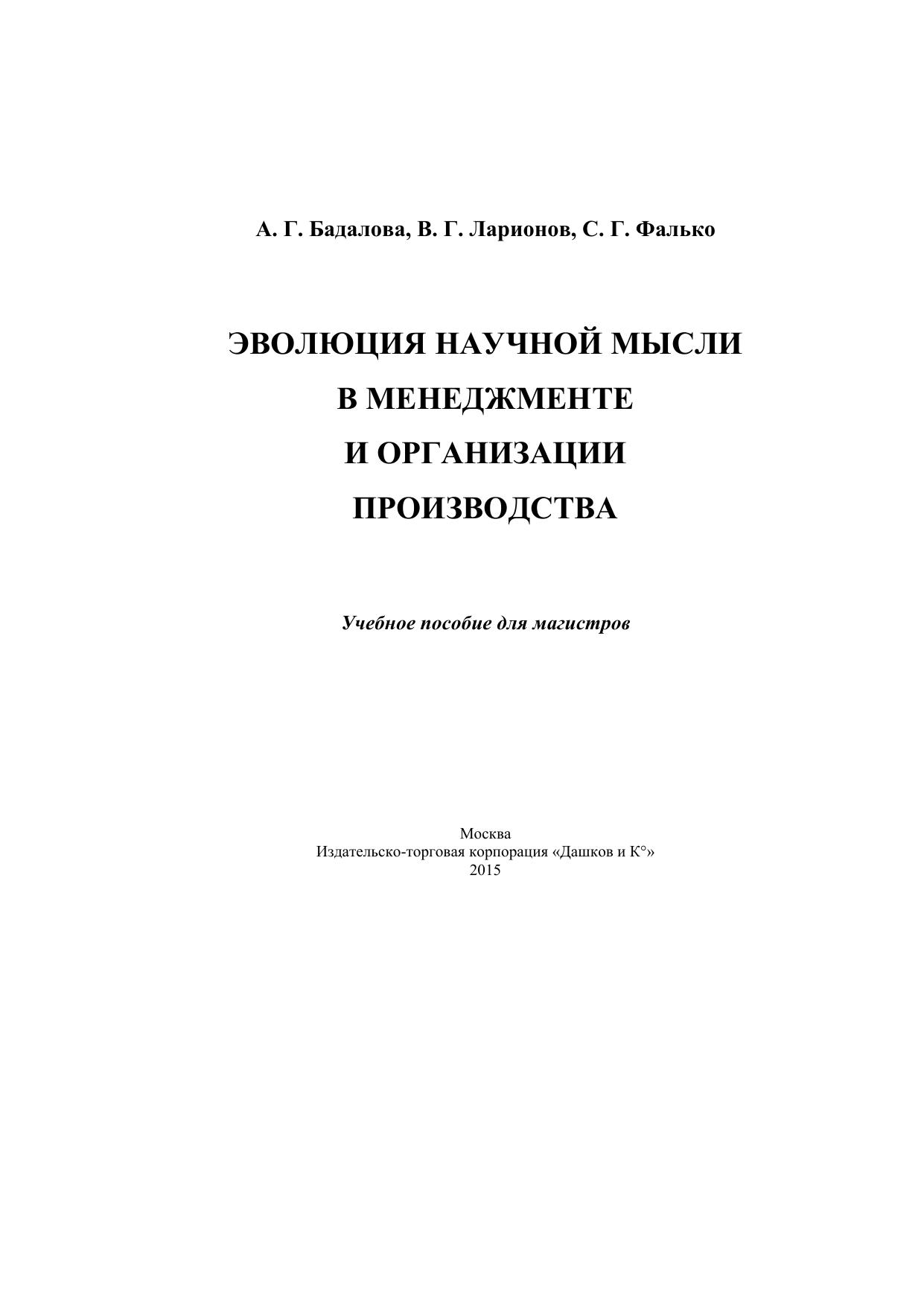 Эволюция научной мысли в менеджменте и организация производства: Учебное пособие для магистров