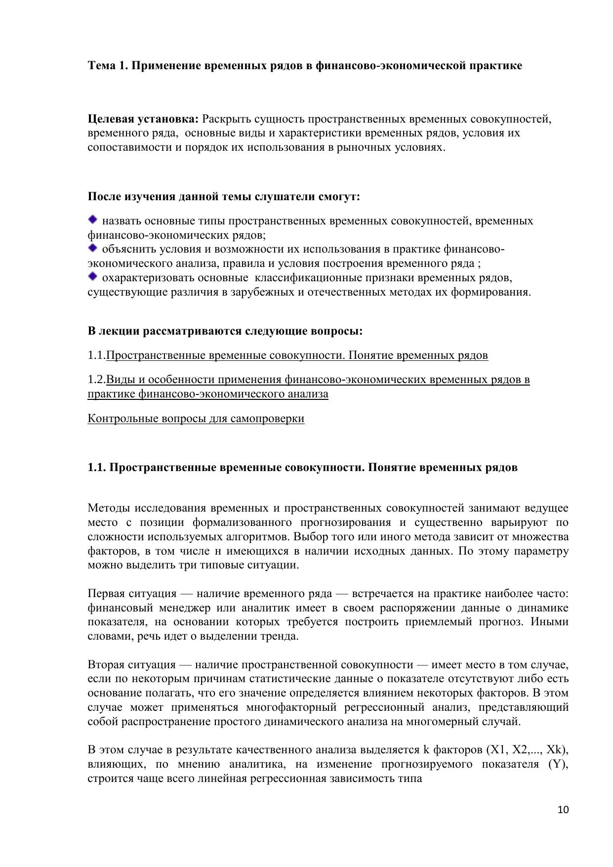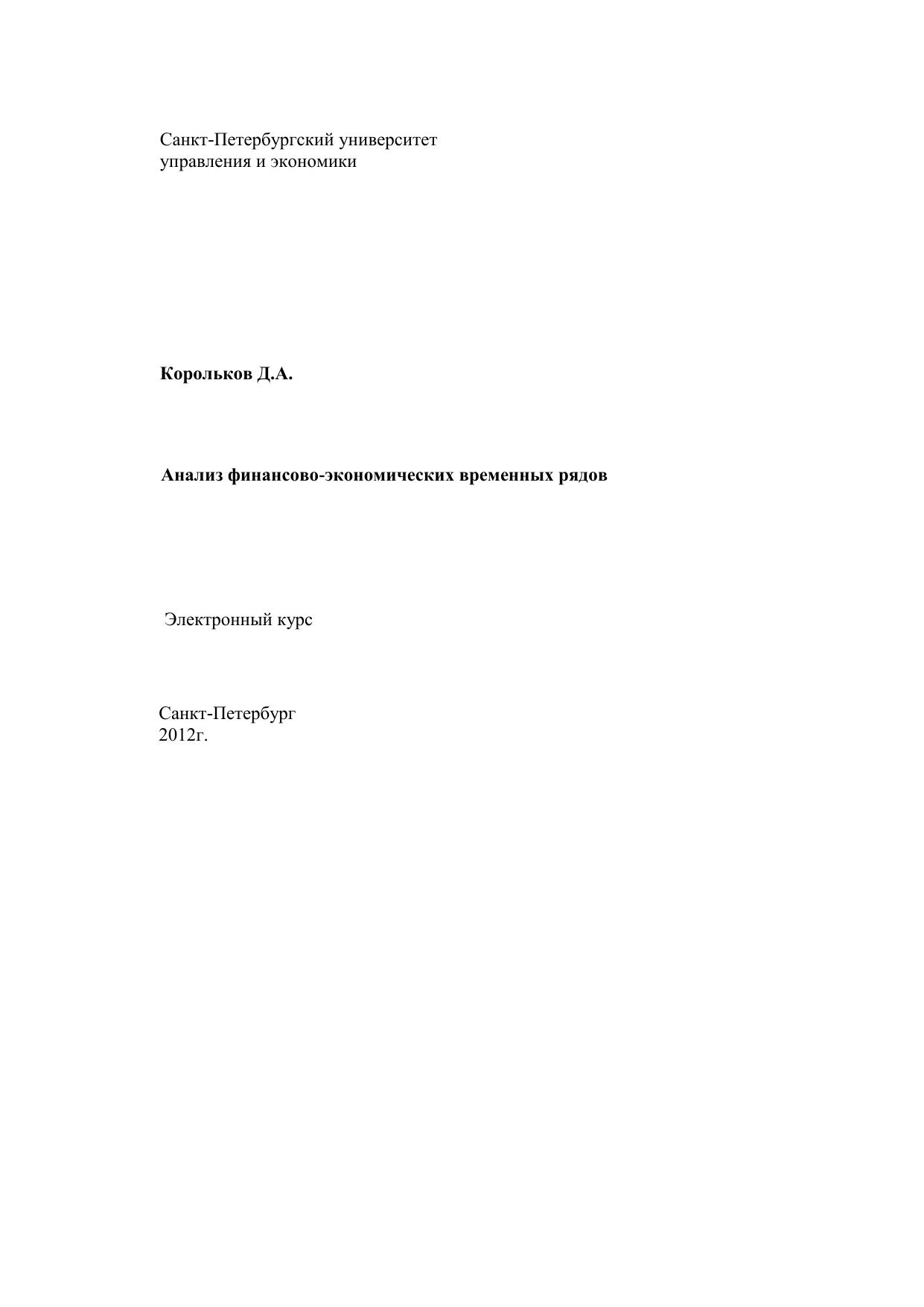 Анализ финансово-экономических временных рядов