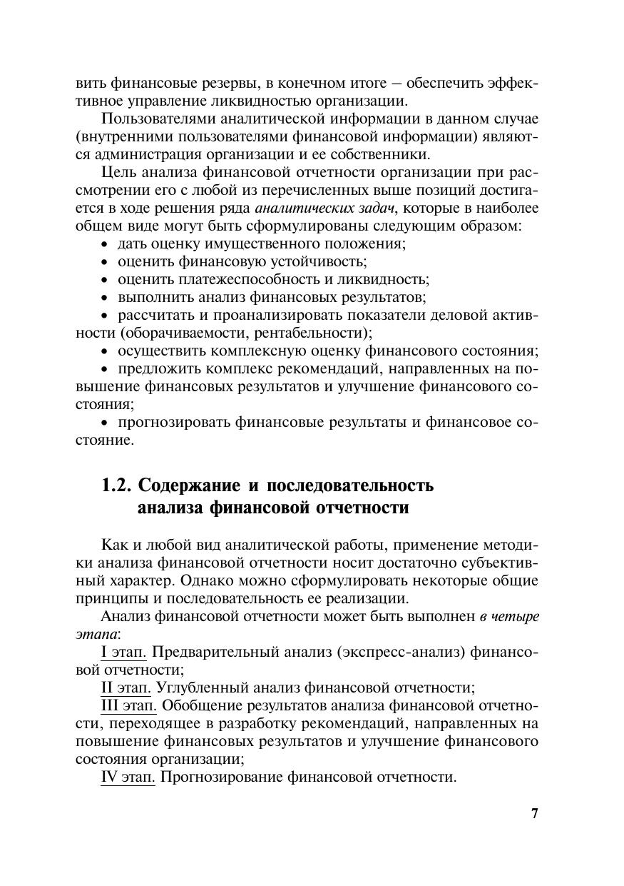 Рассматривается система анализа финансовой (бухгалтерской) отчетности. Раскрываются теоретические основы анализа финансовой отчетности, излагается методика анализа бухгалтерского баланса, отчета о финансовых результатах, а также приложений к ним, показаны основные инструменты комплексной оценки финансового состояния организации на основе данных ее финансовой отчетности, специальные разделы финансовой отчетности. Дается характеристика основных методов прогнозирования финансовой отчетности, определяется место анализа финансовой отчетности в системе стратегического менеджмента. Приводятся практические примеры анализа некоторых наиболее важных форм финансовой отчетности.