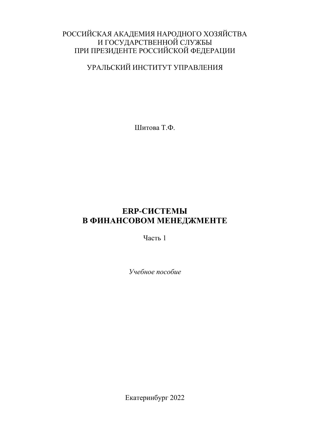 ERP-системы в финансовом менеджменте: в 2 частях. Ч. 1