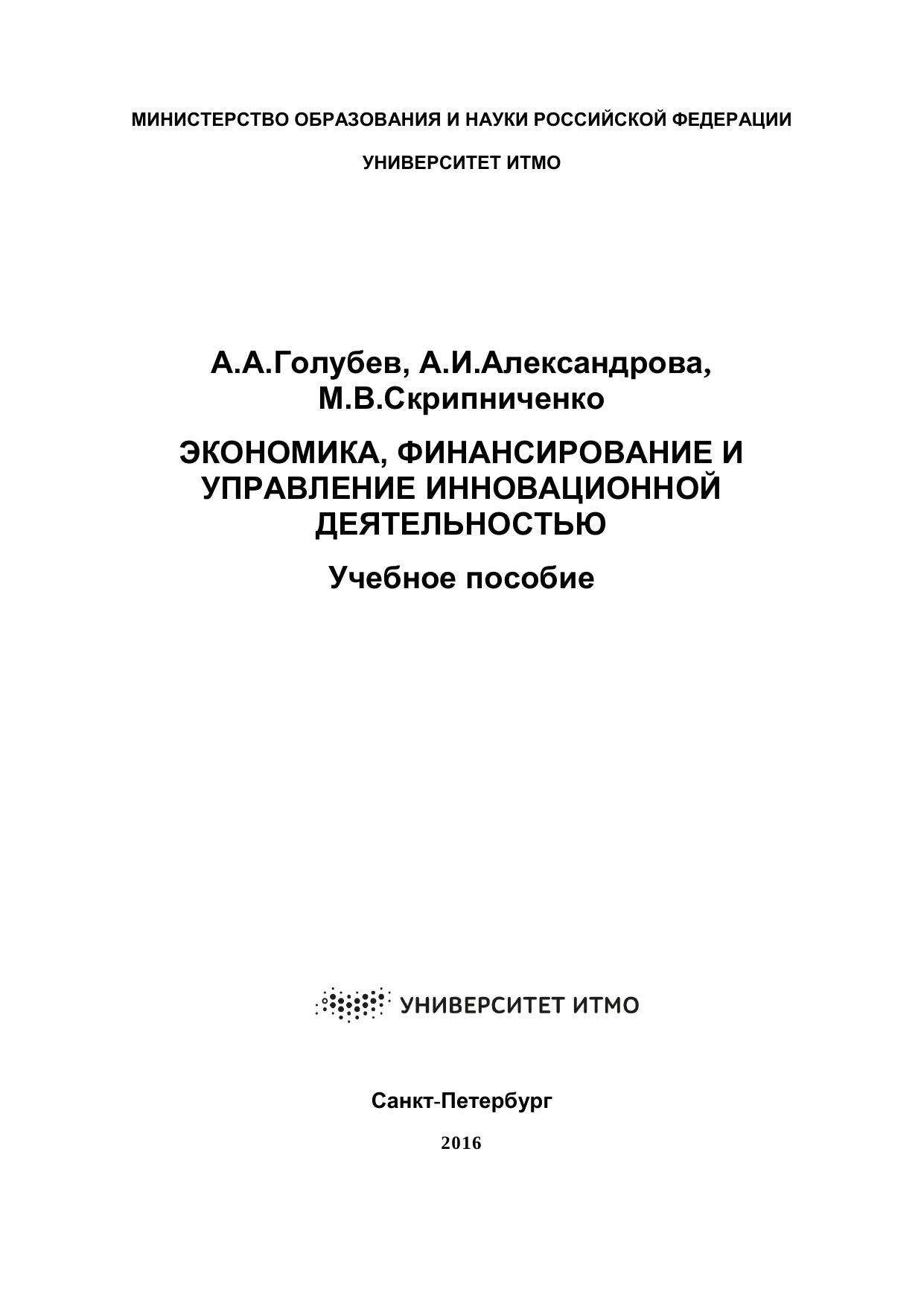 Экономика, финансирование и управление инновационной деятельностью: Учебное пособие