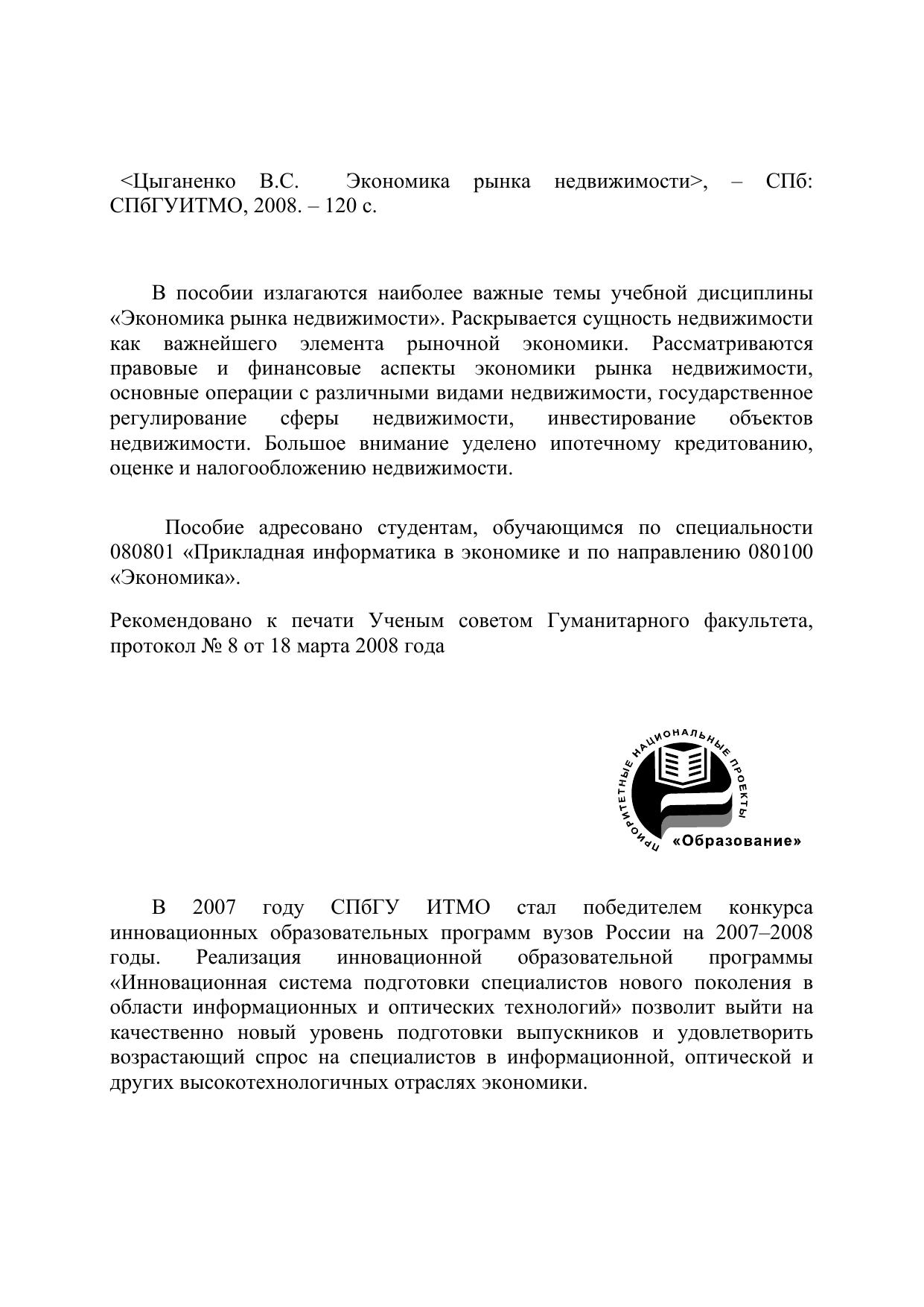 В пособии излагаются наиболее важные темы учебной дисциплины «Экономика рынка недвижимости». Раскрывается сущность недвижимости как важнейшего элемента рыночной экономики. Рассматриваются правовые и финансовые аспекты экономики рынка недвижимости, основные операции с различными видами недвижимости, государственное регулирование сферы недвижимости, инвестирование объектов недвижимости. Большое внимание уделено ипотечному кредитованию,оценке и налогообложению недвижимости.