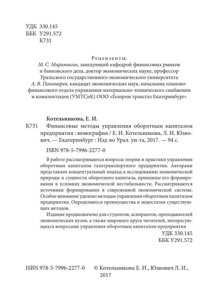 Издание предназначено для студентов, аспирантов, преподавателей экономических вузов, а также широкого круга читателей, интересующихся вопросами управления оборотным капиталом предприятия.