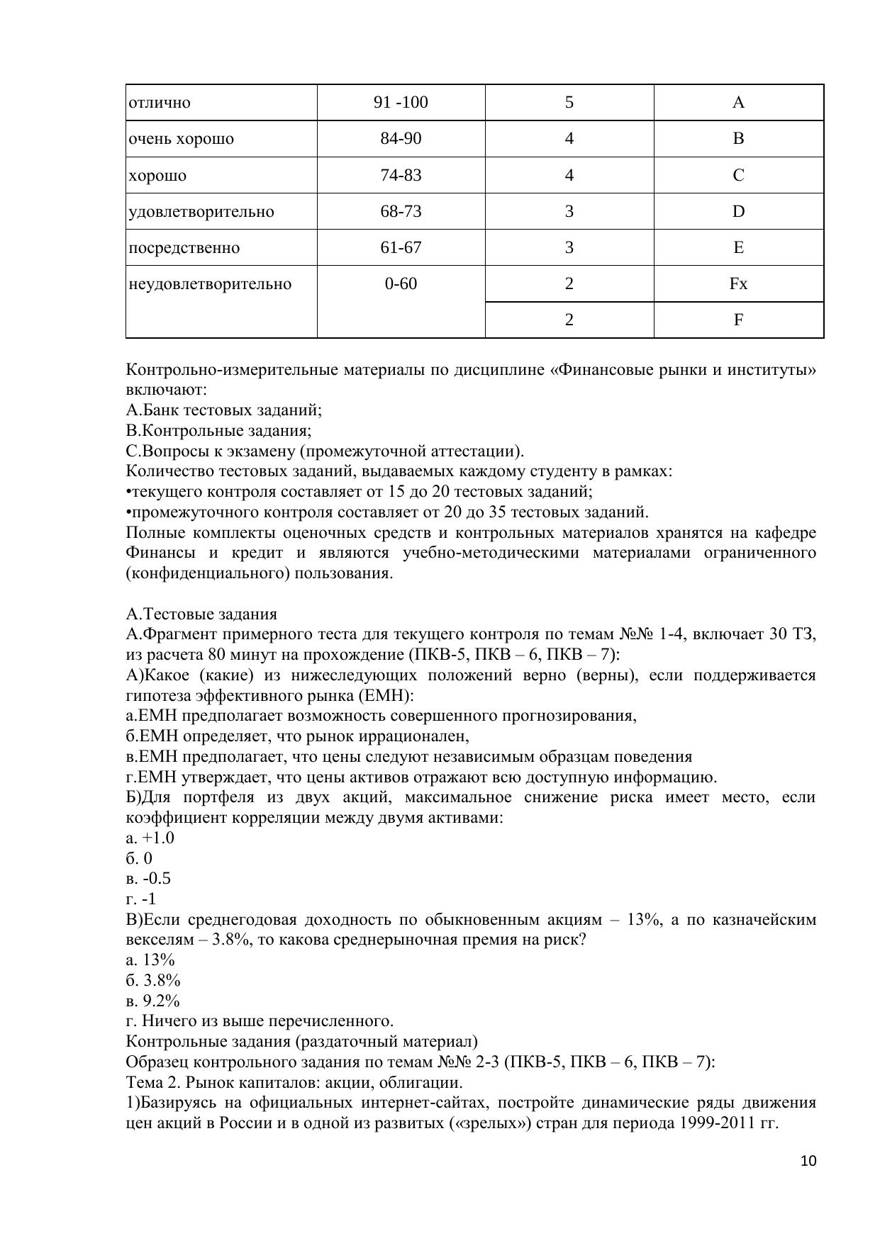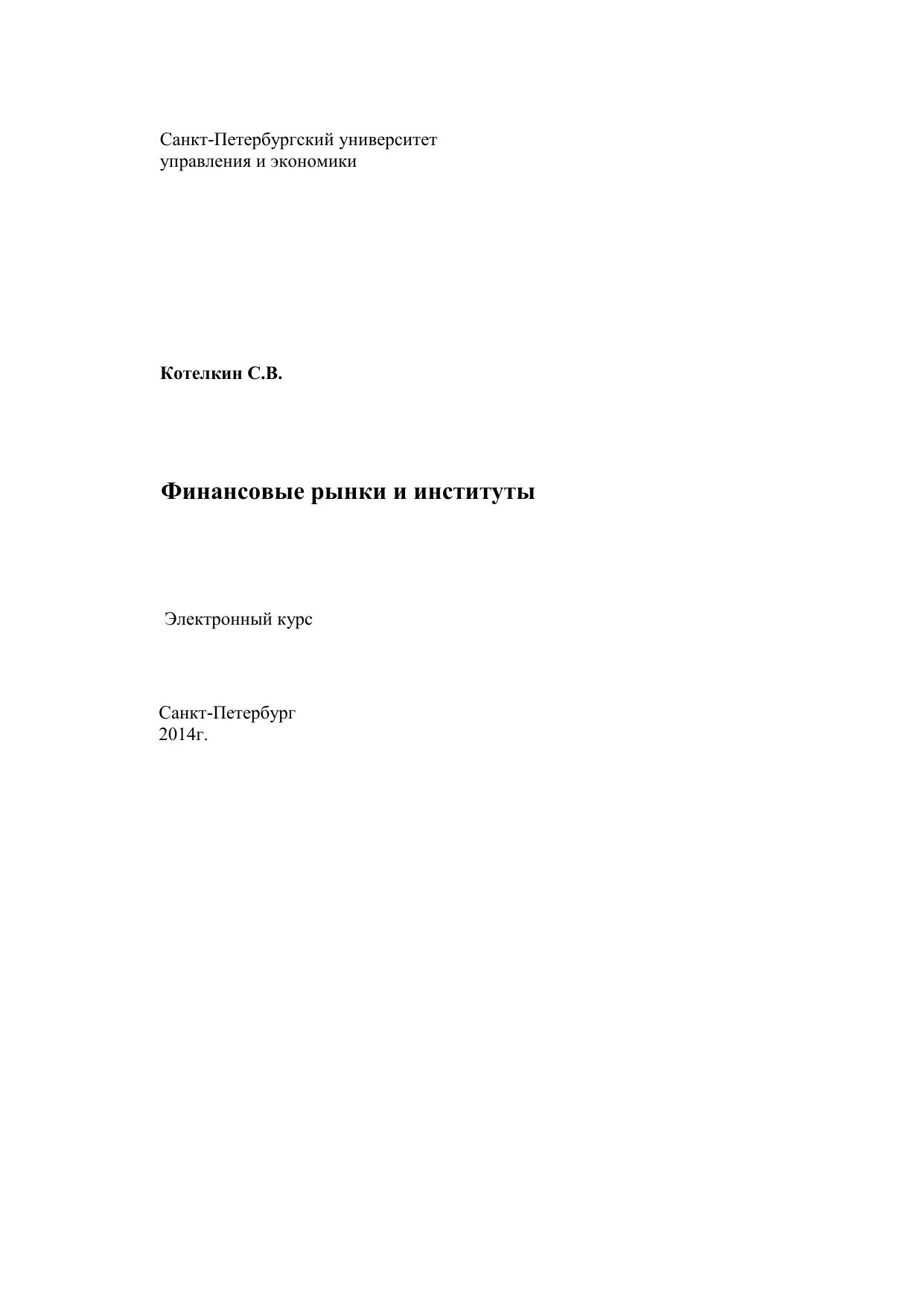 Финансовые рынки и институты (Экономика)